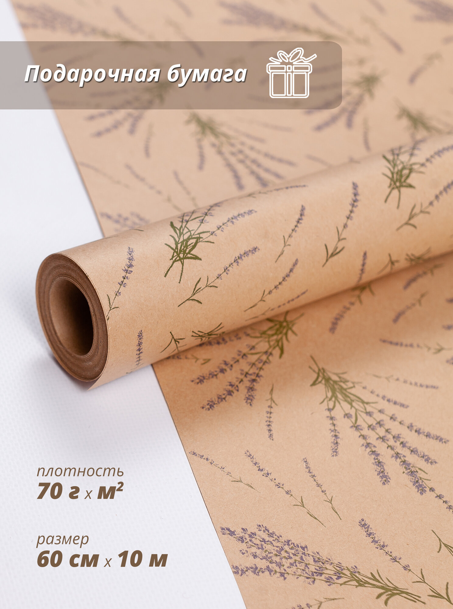 Упаковочная бумага Woodenking "Букет лаванды" 60 см* 10 м, для подарков и цветов, подарочная, флористическая, в рулоне информация: