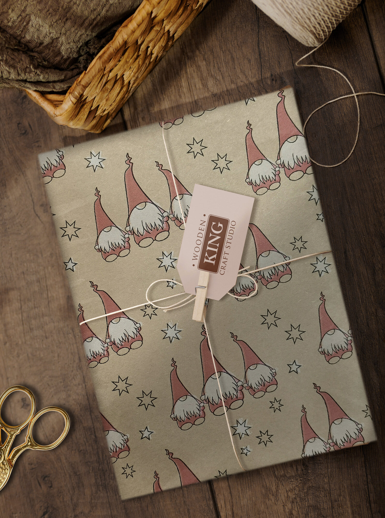 Упаковочная бумага Wooden Dreams "Гномы" 60 см* 10 м, для подарков и цветов, подарочная, флористическая, в рулоне