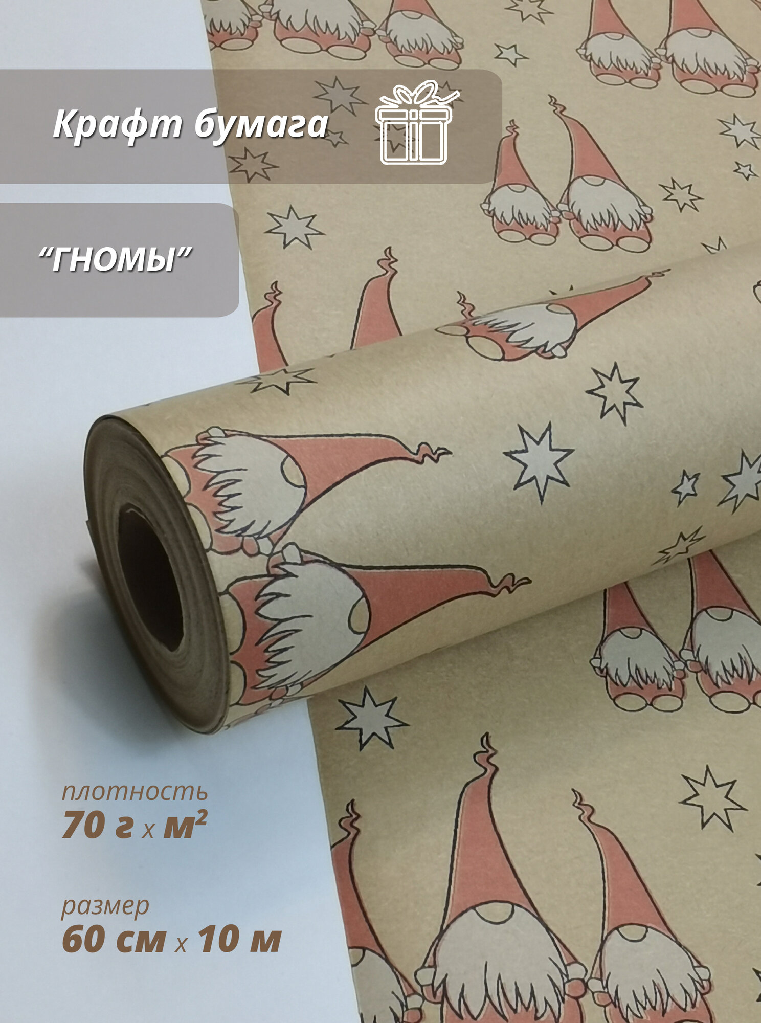 Отзывы на Упаковочная бумага Woodenking "Гномы" 60 см * 10 м, для подарков и цветов, подарочная, флористическая, в рулоне