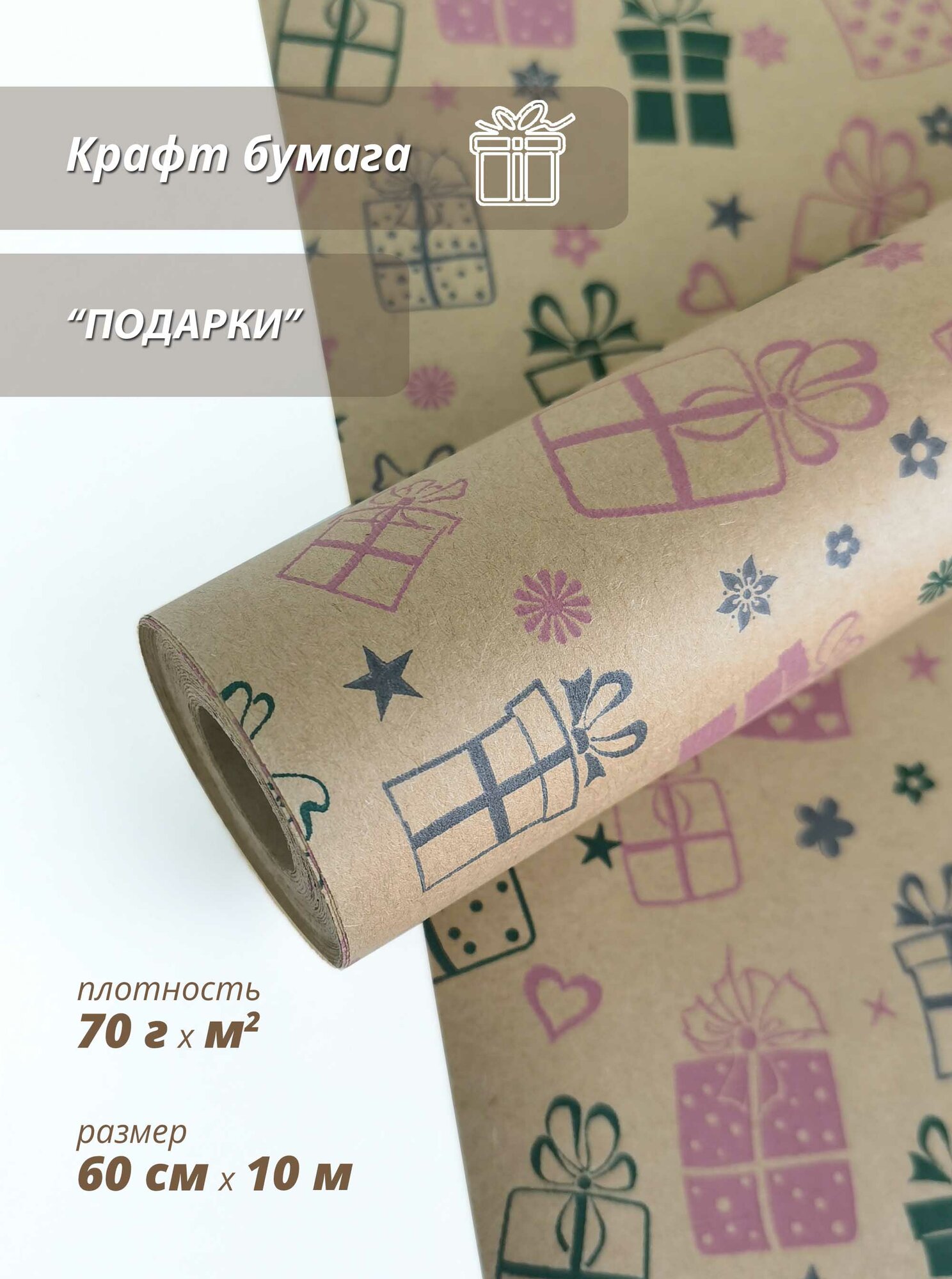 10 цен на Упаковочная бумага Woodenking "Подарки" 60 см * 10 м, для подарков и цветов, подарочная, флористическая, в рулоне