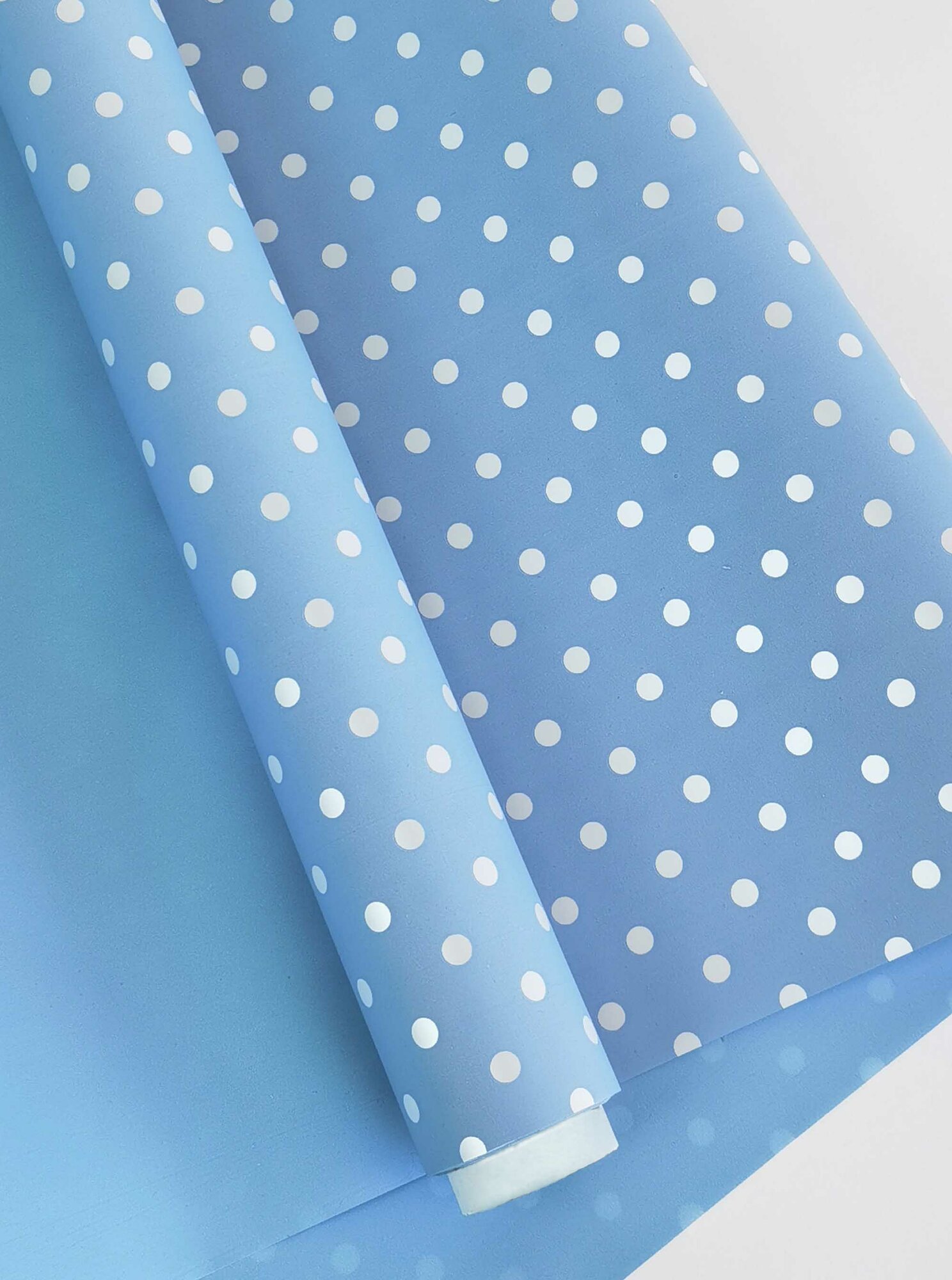 Отзывы на Упаковочная пленка Woodenking, матовая, 60 см*10 м "Горошек", голубой, подарочная, для цветов и подарков, в рулоне