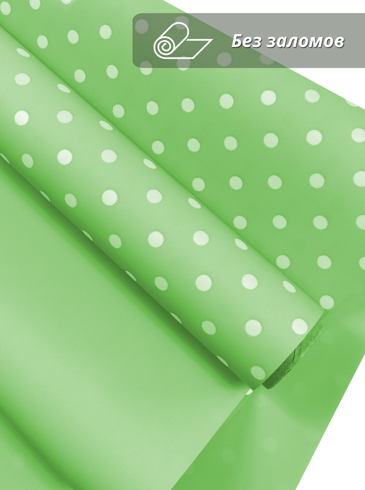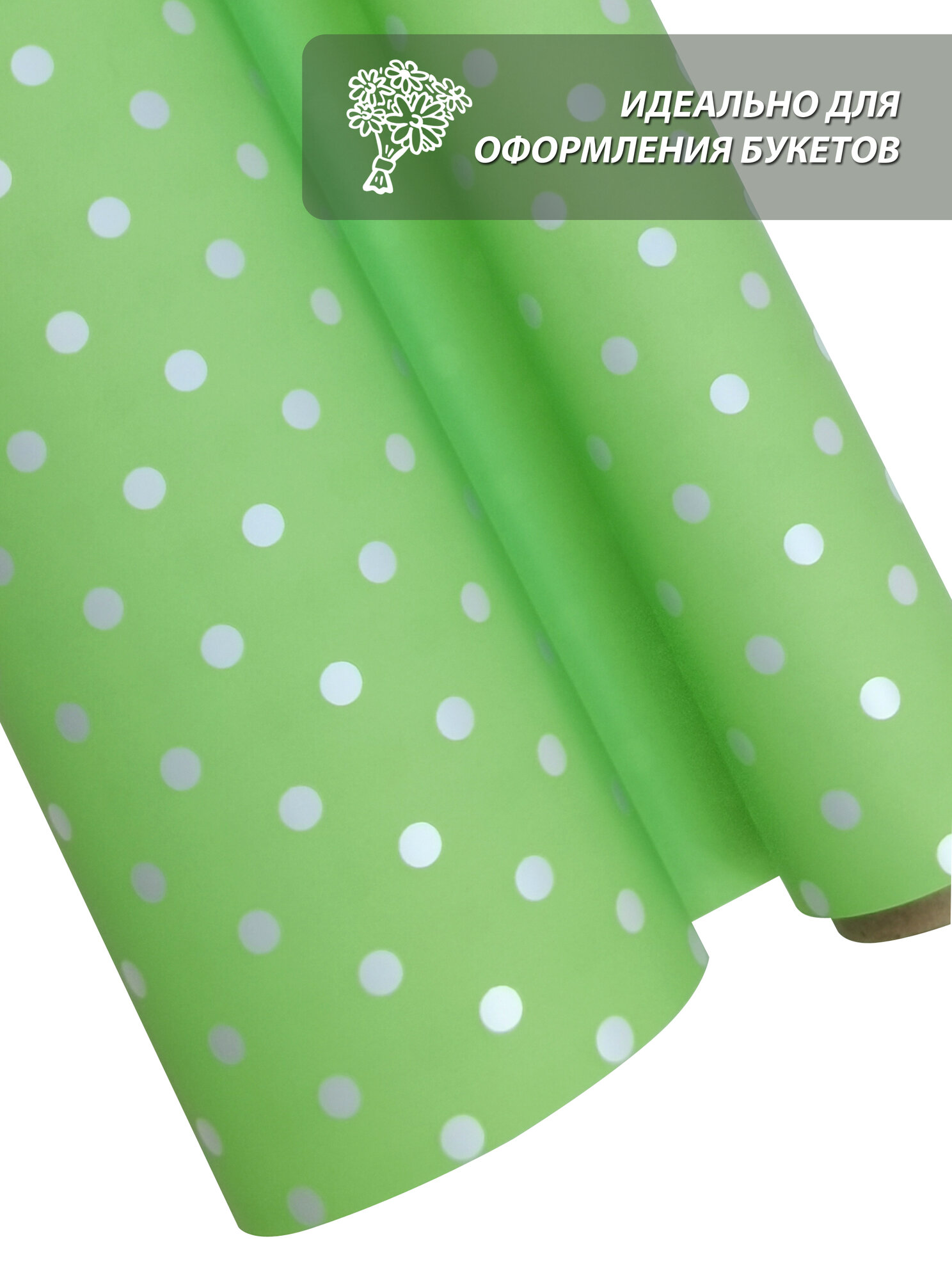 10 цен на Подарочная упаковочная пленка Woodenking матовая в рулонах 60см*10м "Горошек салатовый" оберточная для цветов и подарков