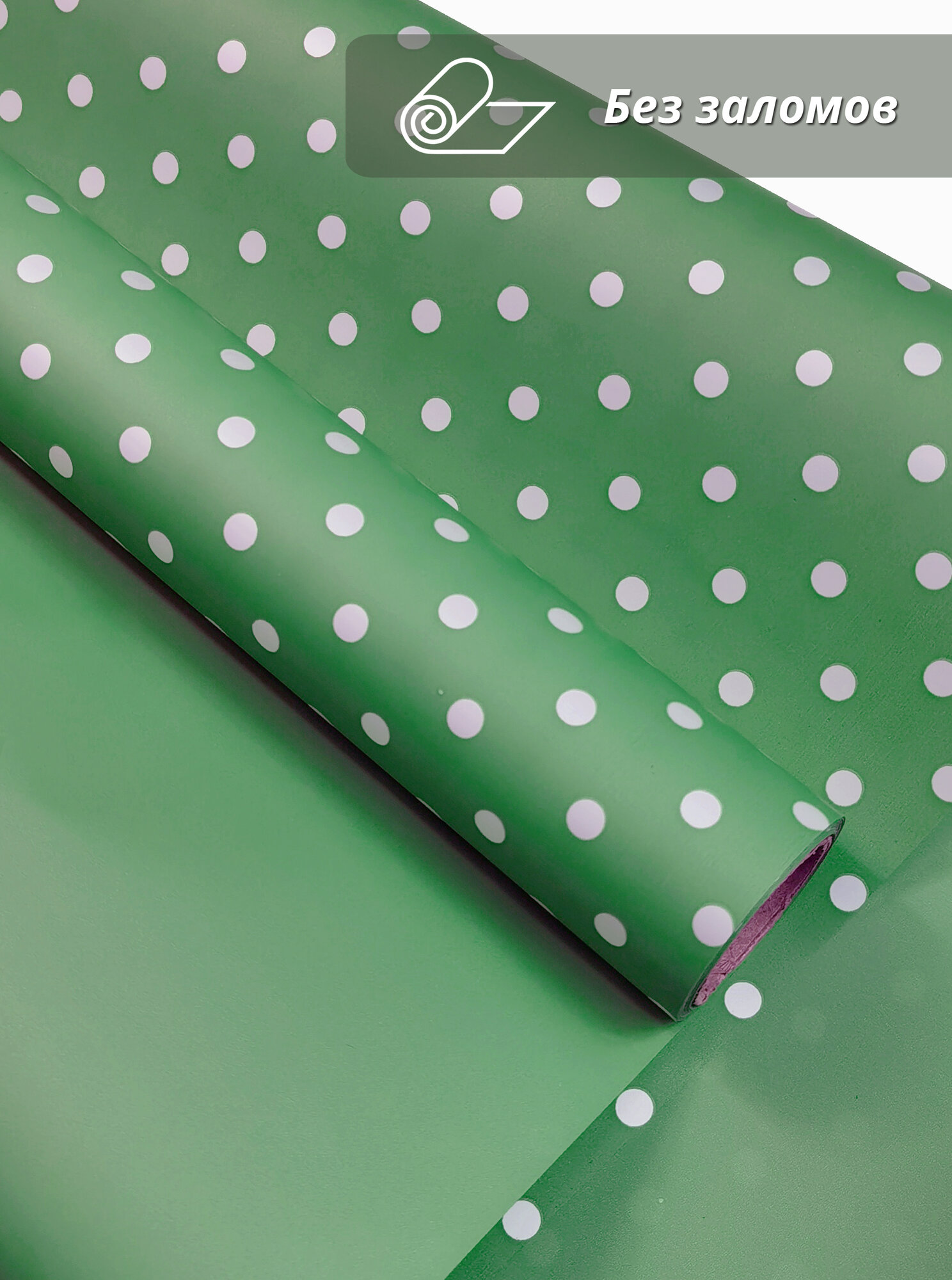 Отзывы на Подарочная упаковочная пленка Woodenking матовая в рулонах 60см*10м "Горошек мятный" оберточная для цветов и подарков