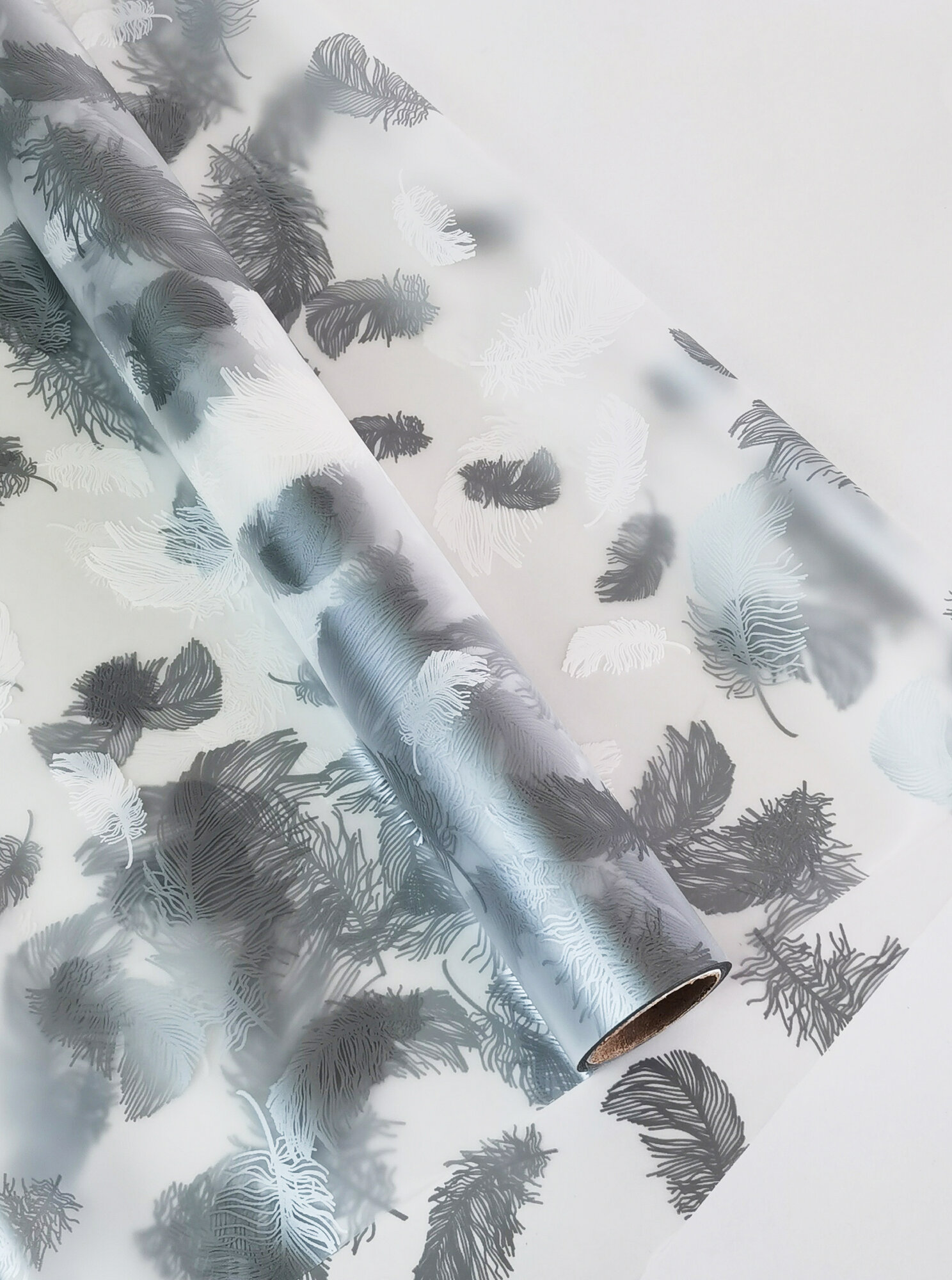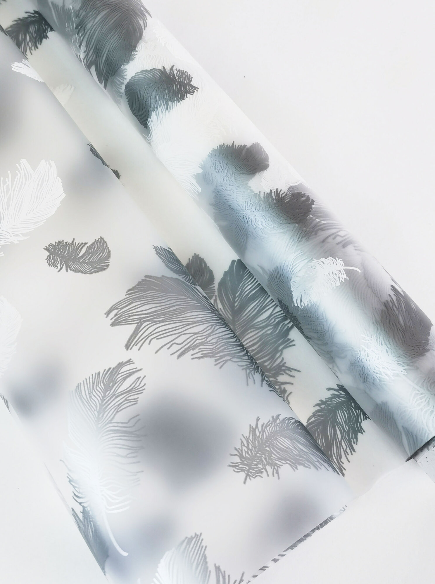 Подарочная упаковочная пленка Woodenking матовая в рулонах белая оберточная для цветов и подарков "Перья, серебро" информация: