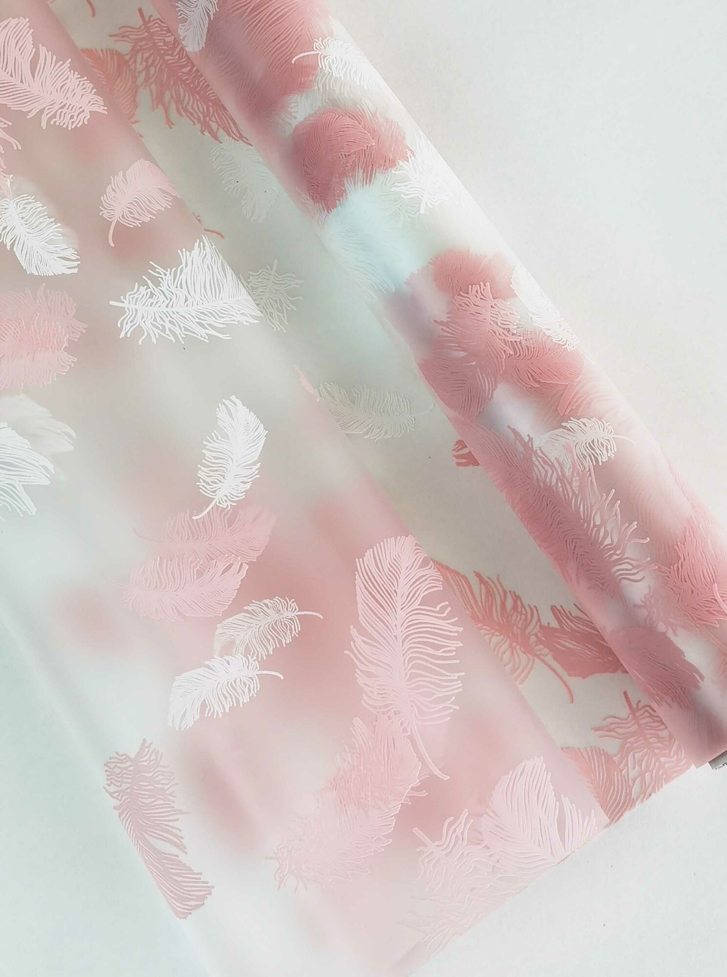 Подарочная упаковочная пленка Woodenking матовая в рулонах 60см*10м розовая оберточная для цветов и подарков "Перья" информация: