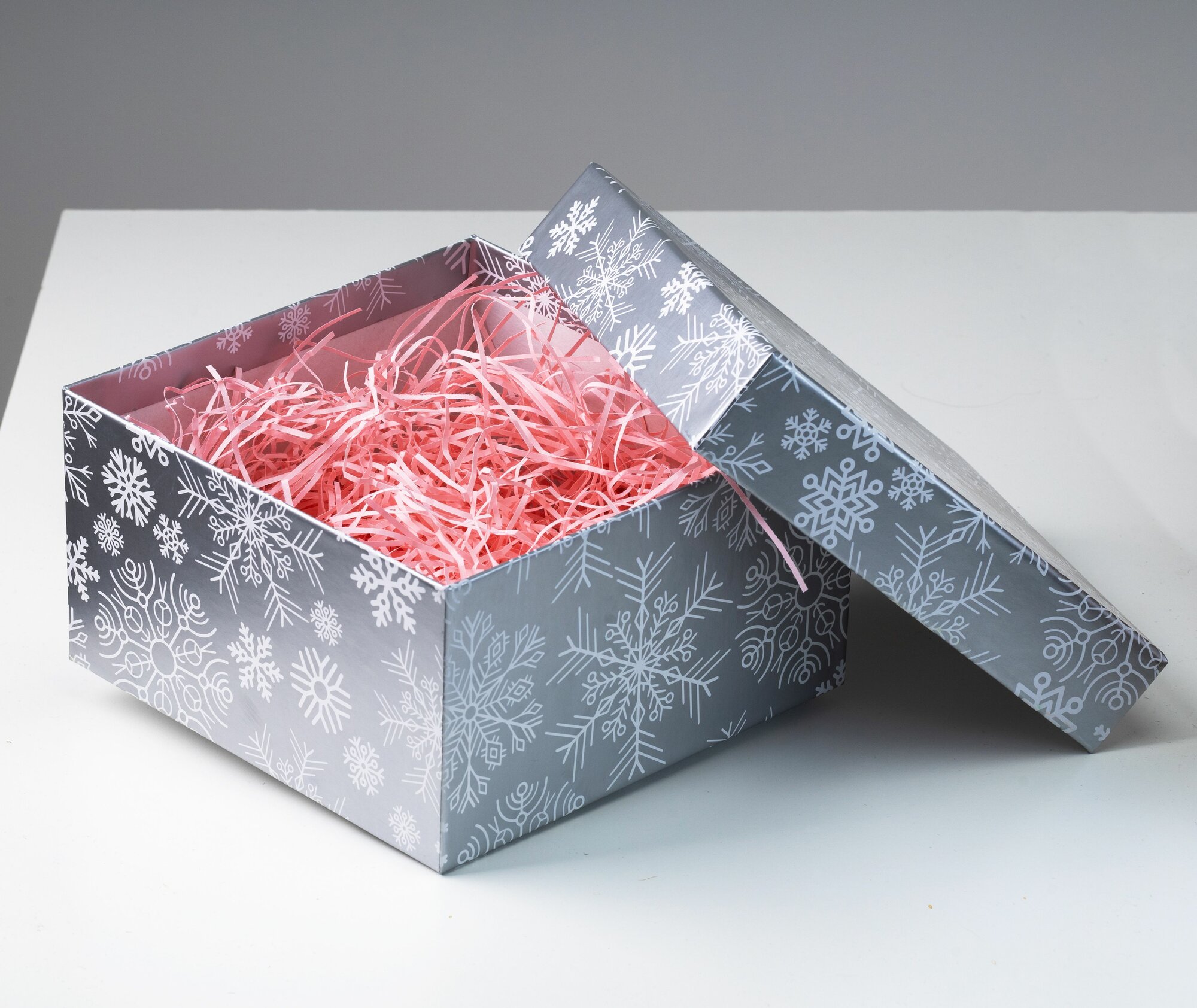 Отзывы на Квадратная коробка крышка-дно, 19 x 19 x 10,5 см. "Снежинки", серый металлик, белый