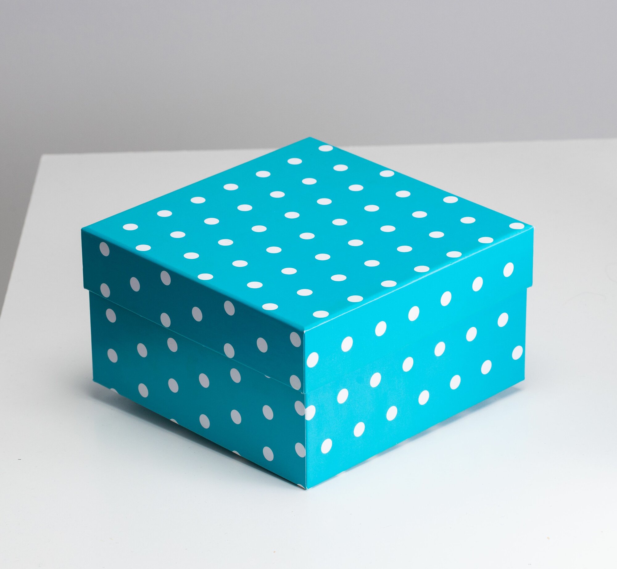 10 цен на Квадратная коробка крышка-дно, 19 x 19 x 10,5 см. "Веселые горошки", голубой, белый