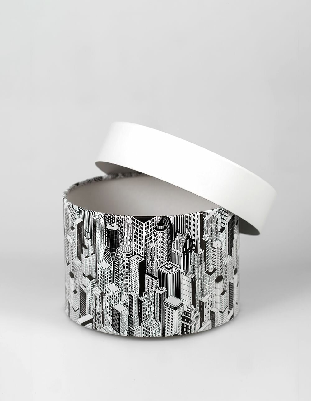 Подарочная коробка завальцованная, 14 х 8 см. "Город", белый, черный, , информация: