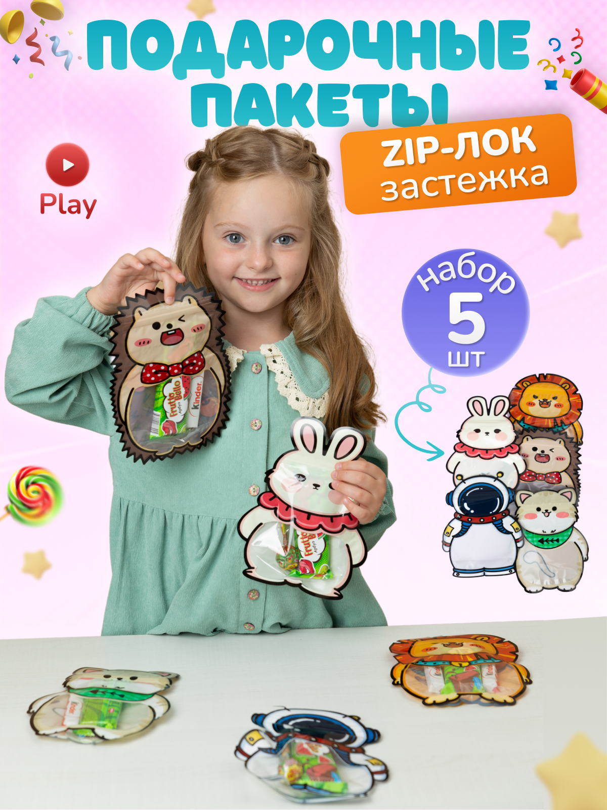 Набор подарочных пакетиков для конфет в детский сад и школу, 5 шт. 294 ₽