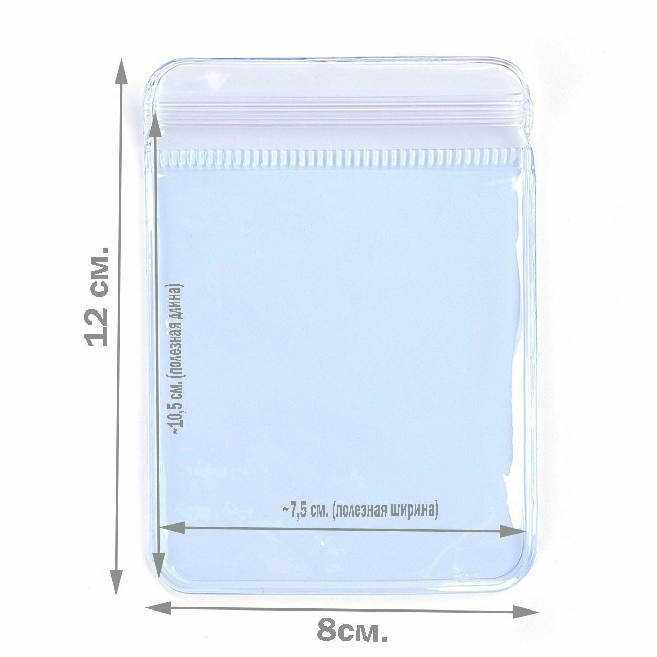 10 цен на 100 пакетов 8х12 см (внутр. размер 7,5х10,5 см) пластиковых из прозрачно-голубого ПВХ и замком Zip Lock для упаковки