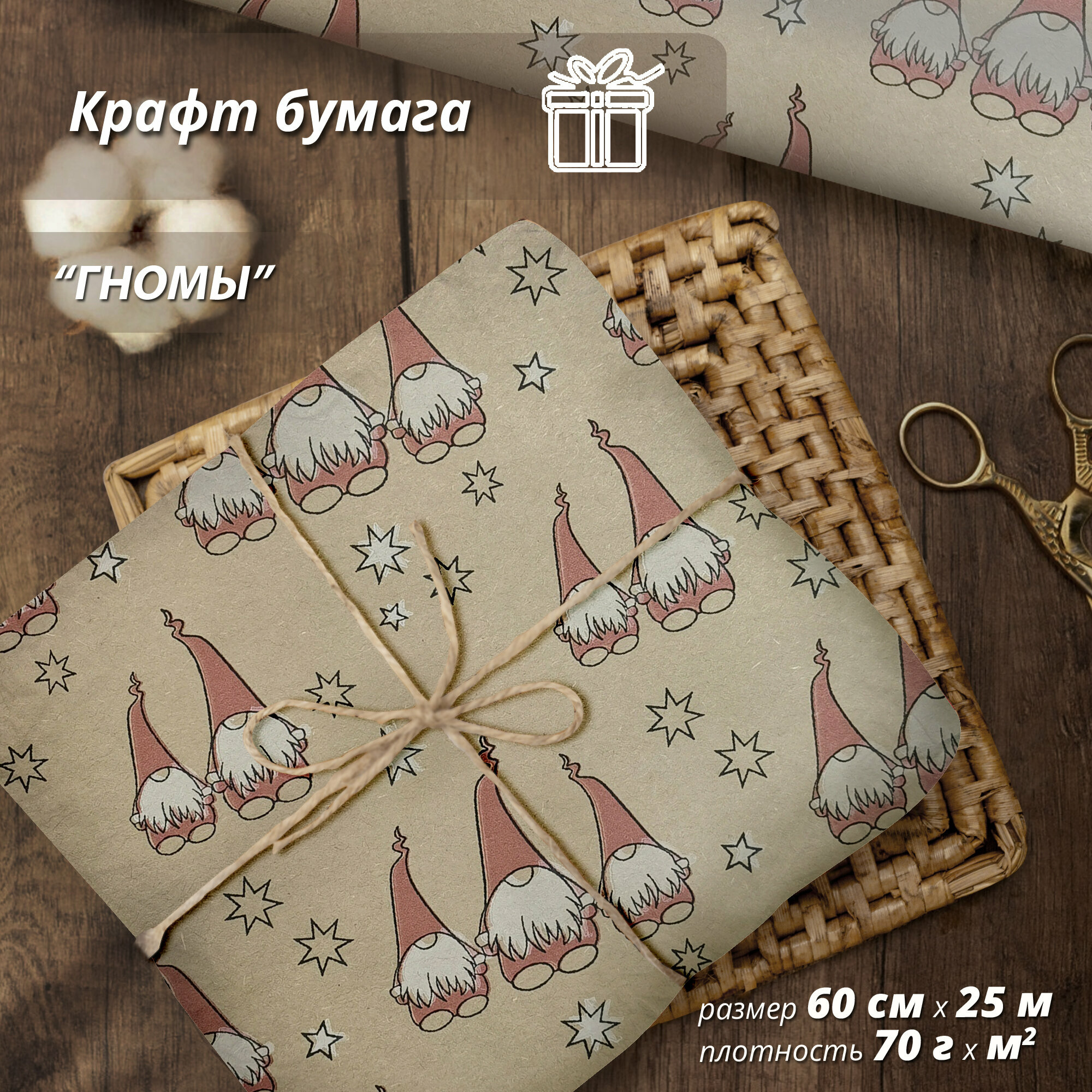 Отзывы на Упаковочная бумага Wooden Dreams "Гномы" 60 см* 10 м, для подарков и цветов, подарочная, флористическая, в рулоне