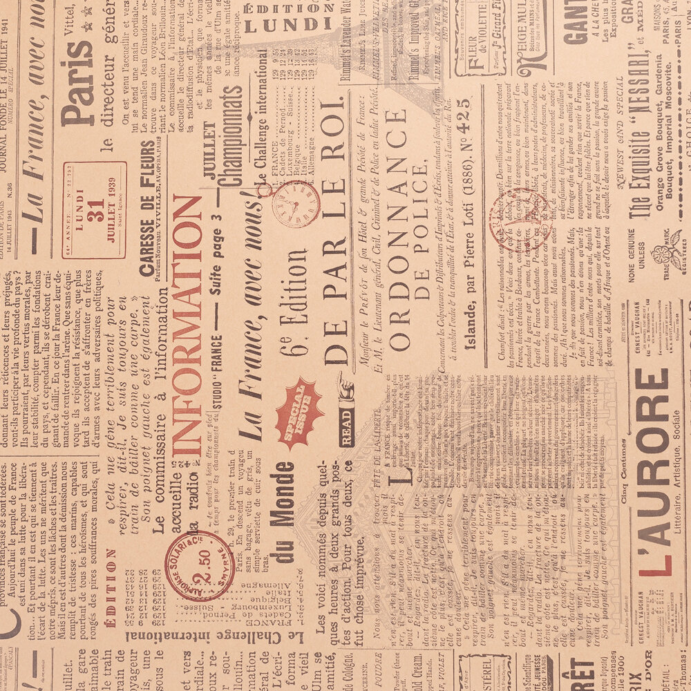 Упаковочная бумага Wooden Dreams "Новости Парижа" 60 см* 10 м, для подарков и цветов, подарочная, флористическая, рулон информация: