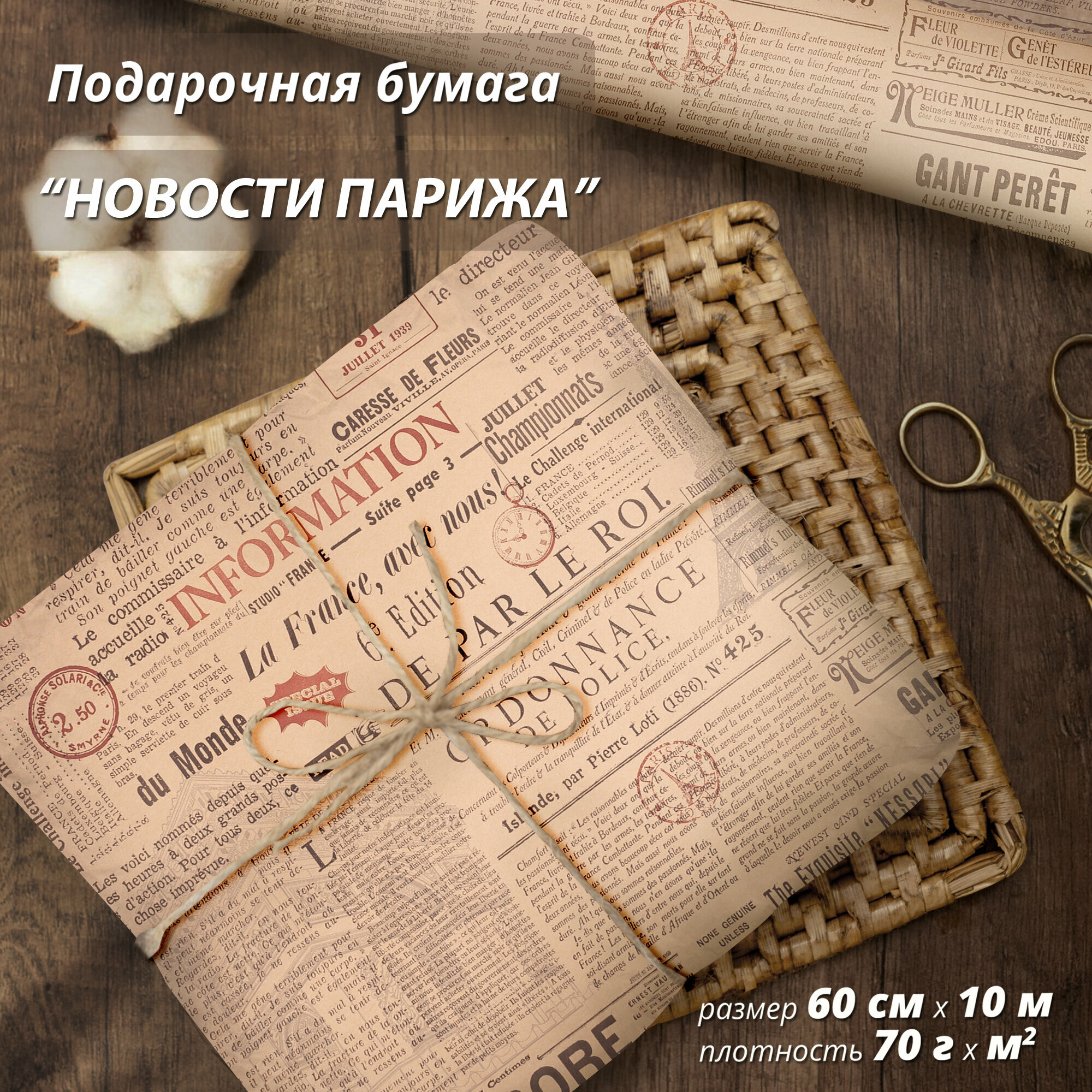 10 цен на Упаковочная бумага Wooden Dreams "Новости Парижа" 60 см* 10 м, для подарков и цветов, подарочная, флористическая, рулон
