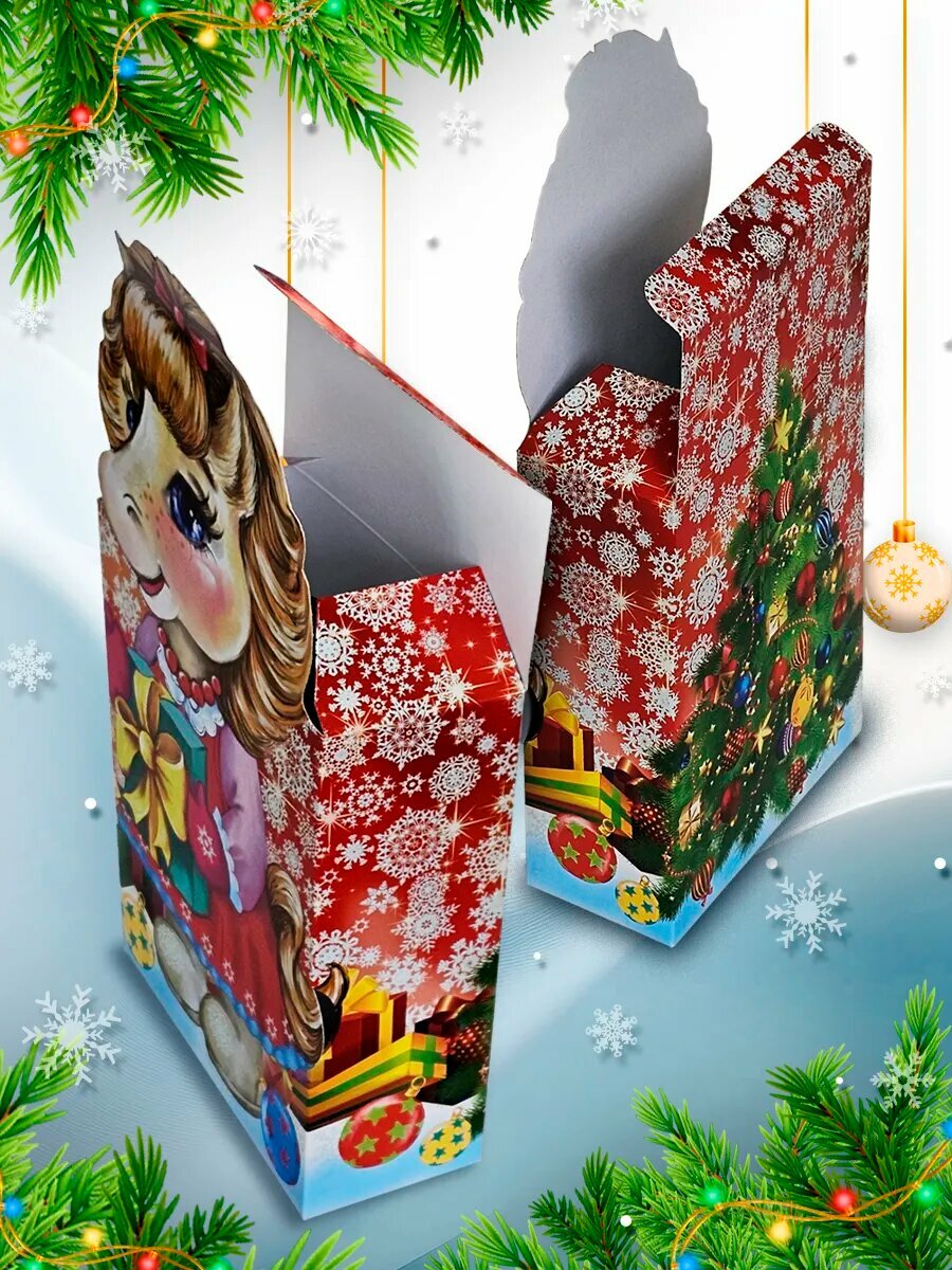 Коробка для новогодних сладких подарков, цвет: красный, зеленый, голубой, желтый, белый информация: