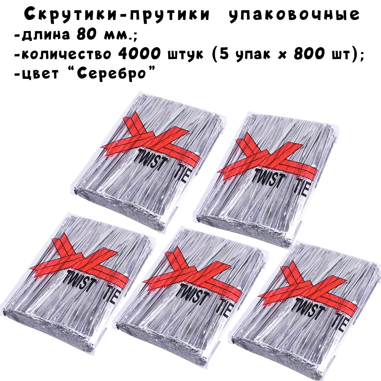 4000 Скрутиков-прутиков длиной 80 мм упаковочных серебристого цвета (5 упаковок по 800 шт) информация: