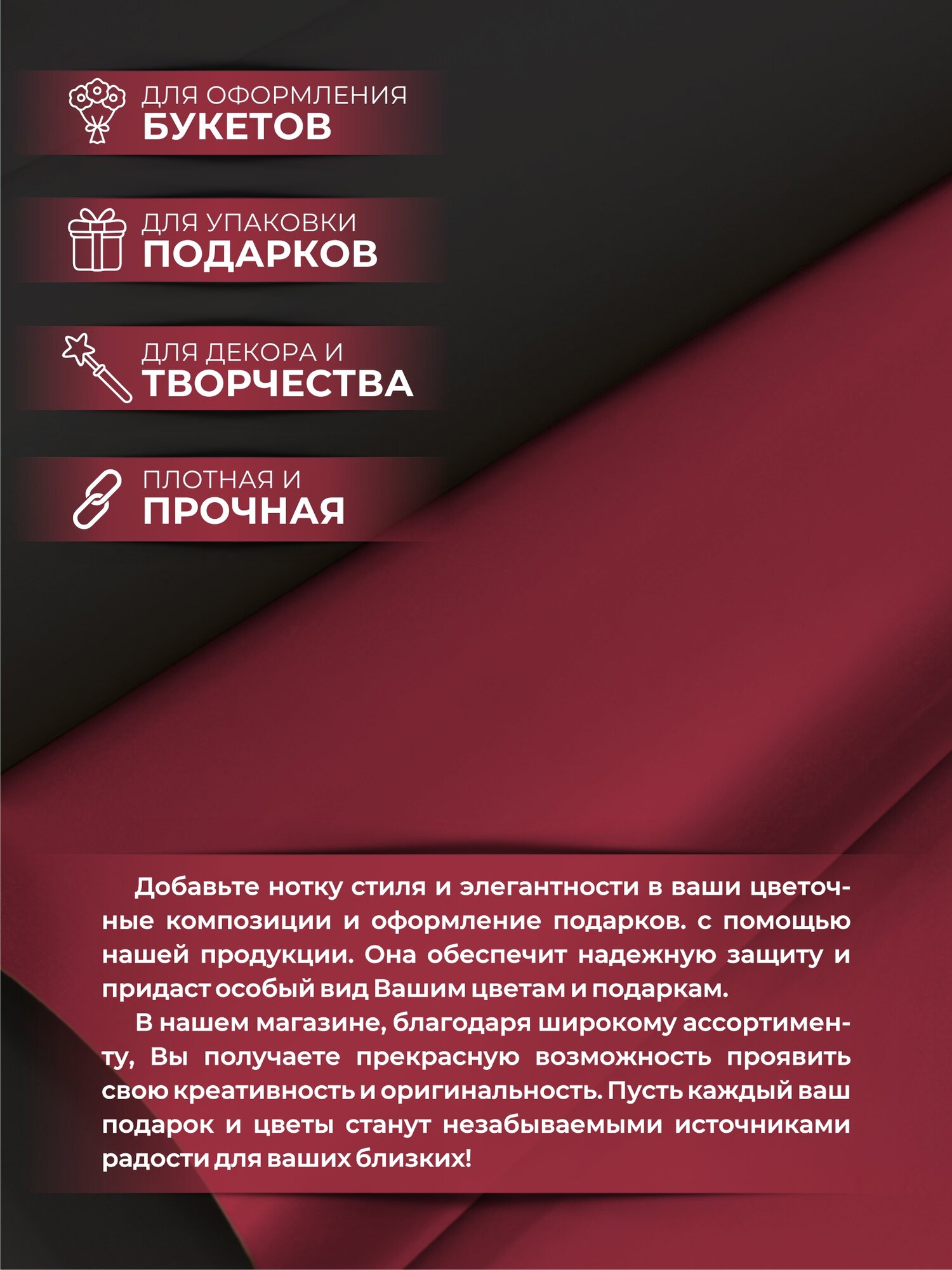 Отзывы на Упаковочная бумага для подарков и цветов от бренда Типография "ТМТ", двусторонняя матовая, 0.57х10м, цвет винный/черный