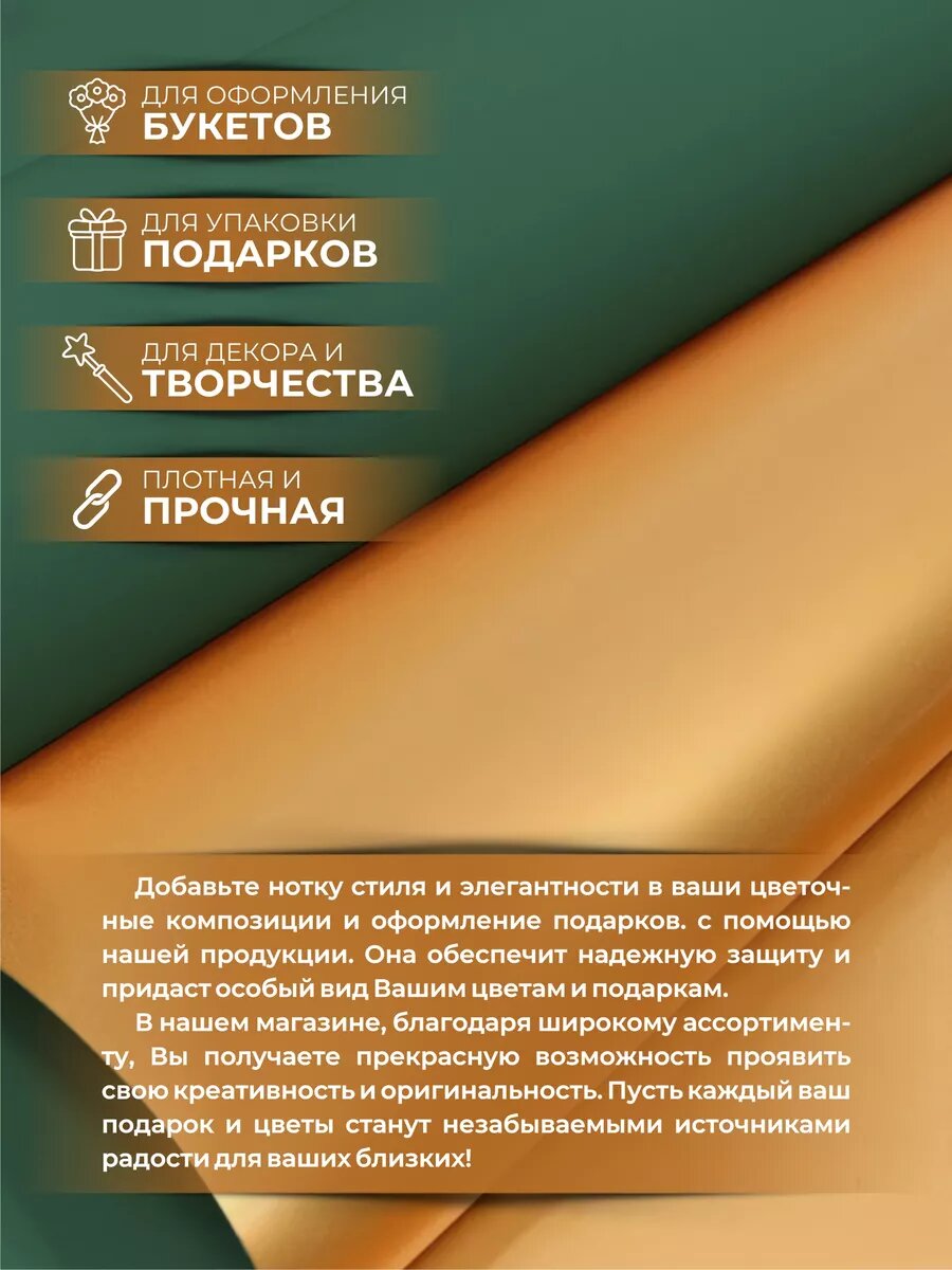 Отзывы на Упаковочная бумага для подарков и цветов, двусторонняя матовая, 0.57х10м, цвет золотой/темно-зеленый