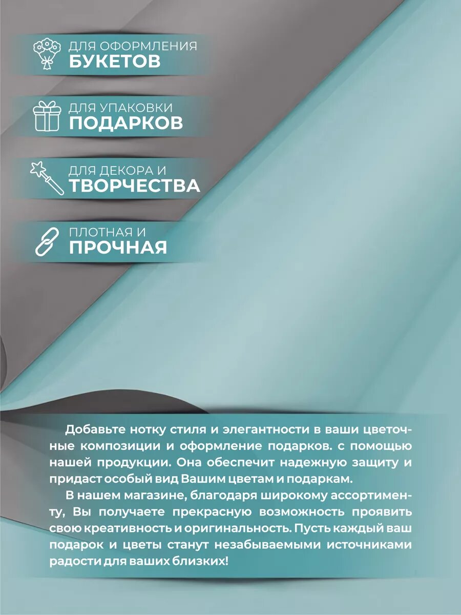 Упаковочная бумага для подарков и цветов от бренда Типография "ТМТ", двусторонняя матовая, 0.57х10м, цвет тиффани/серый информация: