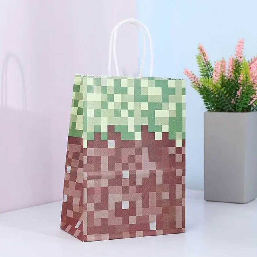 Подарочный пакет Riota "Майнкрафт", 21x15x8 см, крафт-бумага, зеленый информация: