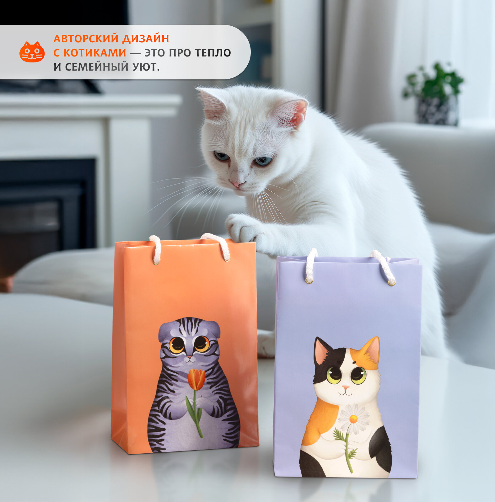10 цен на Подарочные пакеты RUMBA «Милый котик», бумага, детские, новогодние, разноцветные, 3шт