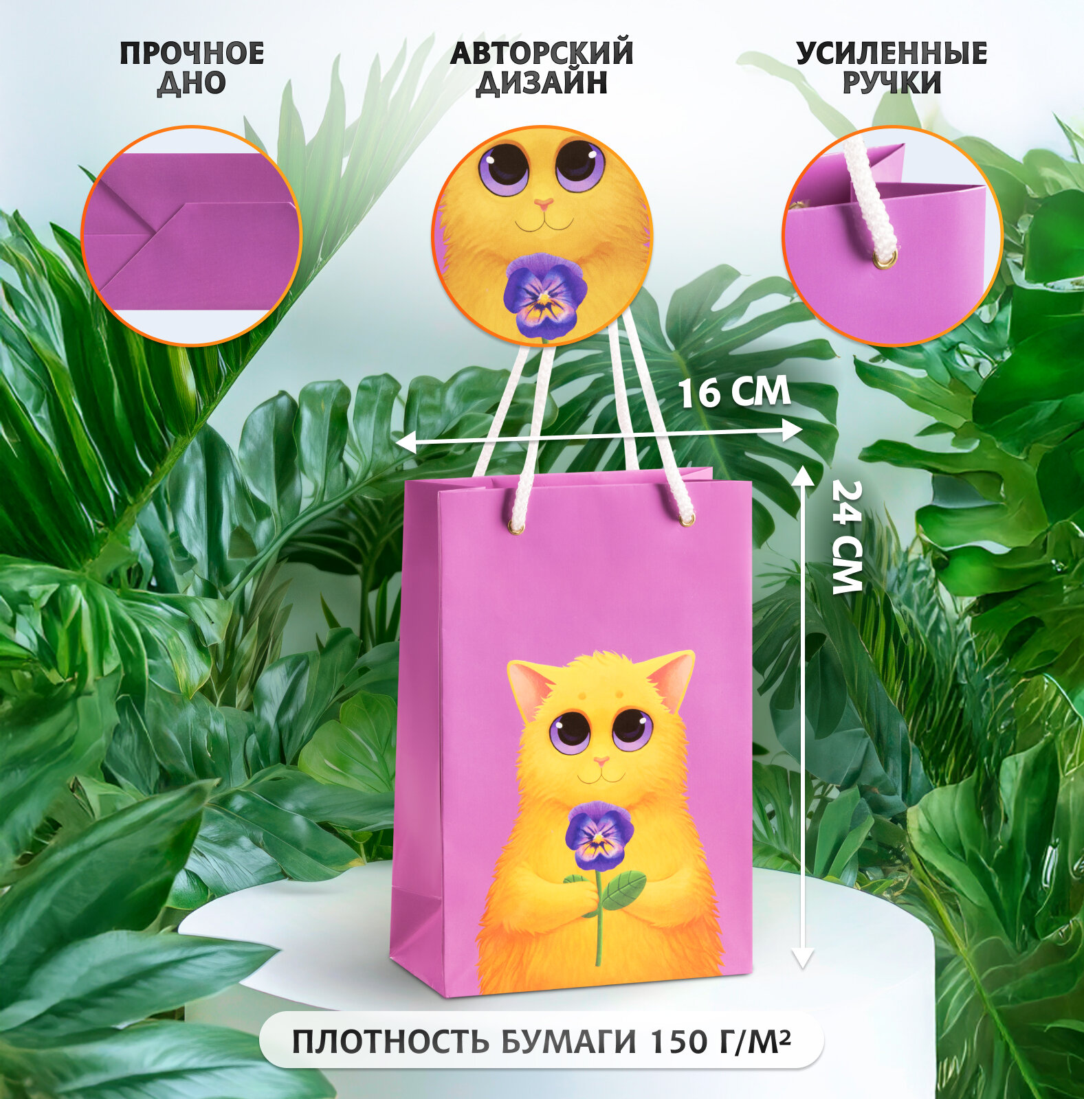Подарочные пакеты RUMBA «Милый котик», бумага, детские, новогодние, разноцветные, 3шт 338 ₽
