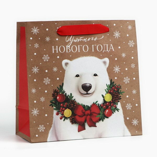 Отзывы на Пакет подарочный новогодний крафтовый квадратный "Новогодний мишка", 22 x 22 x 11 см