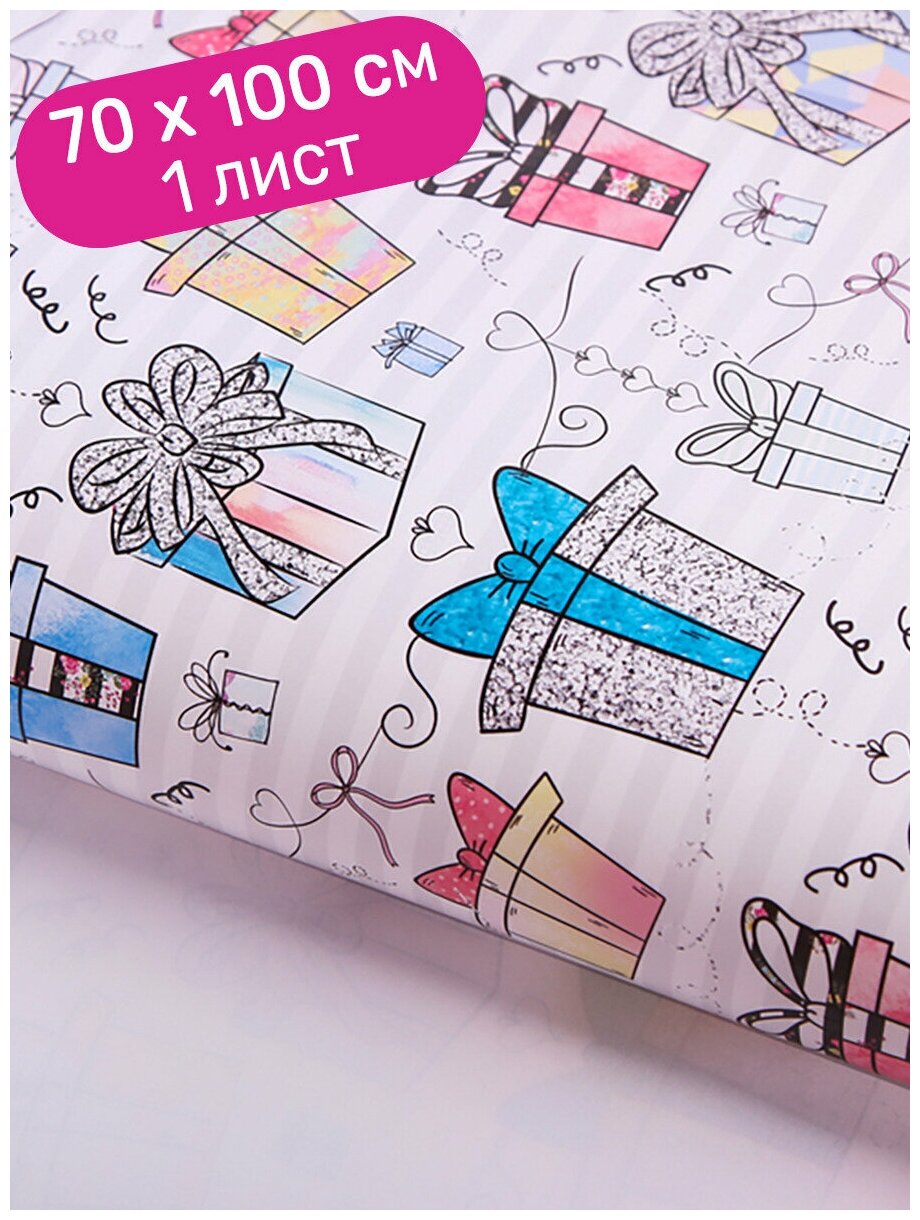Бумага подарочная, упаковочная глянцевая Дарите счастье Подарочки, белая, 0,7*1 м, 1 лист информация: