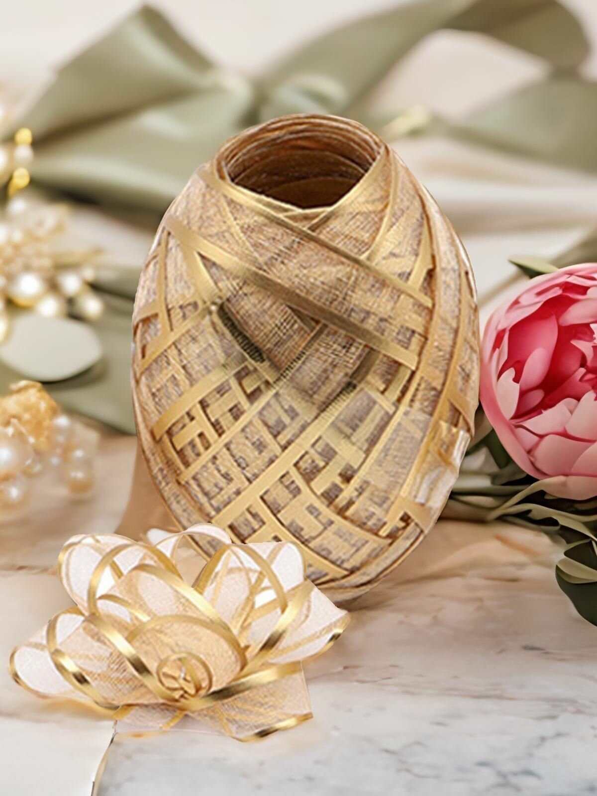 10 цен на Набор для упаковки подарка (лента 1см*10м и 4 бантика), золото