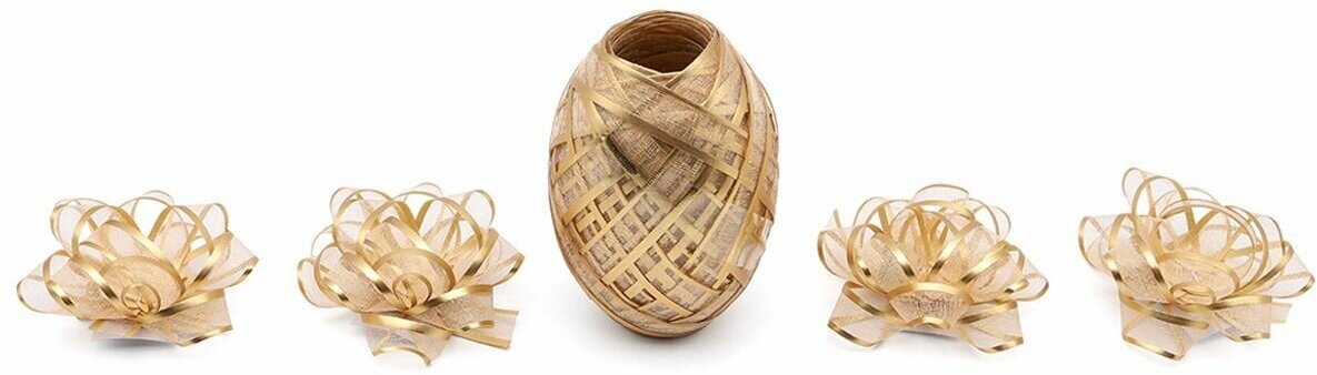 Набор для упаковки подарка (лента 1см*10м и 4 бантика), золото информация: