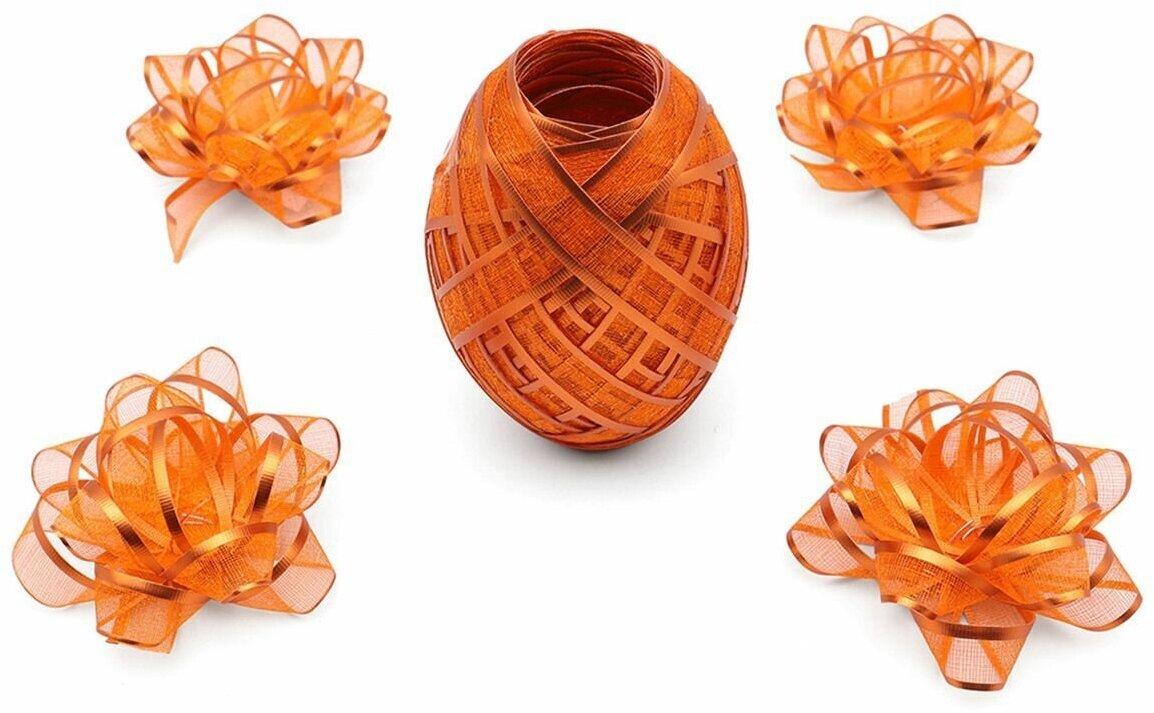 Набор для упаковки подарка (лента 1см*10м и 4 бантика), оранжевый информация: