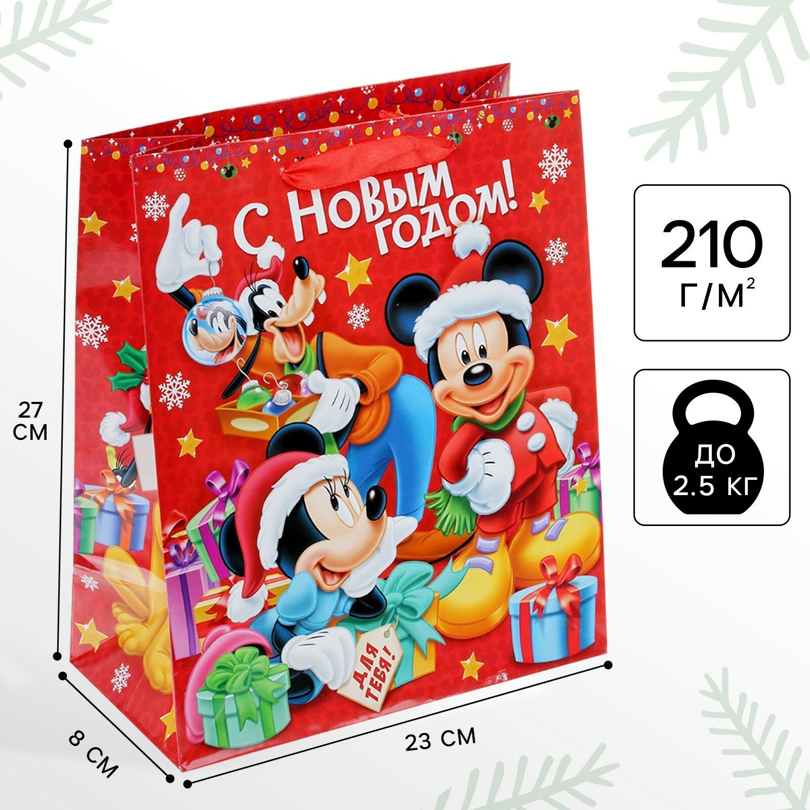 Пакет подарочный ламинированный "С Новым Годом!", Микки Маус и его друзья, размер 23 х 27 х 8 см информация: