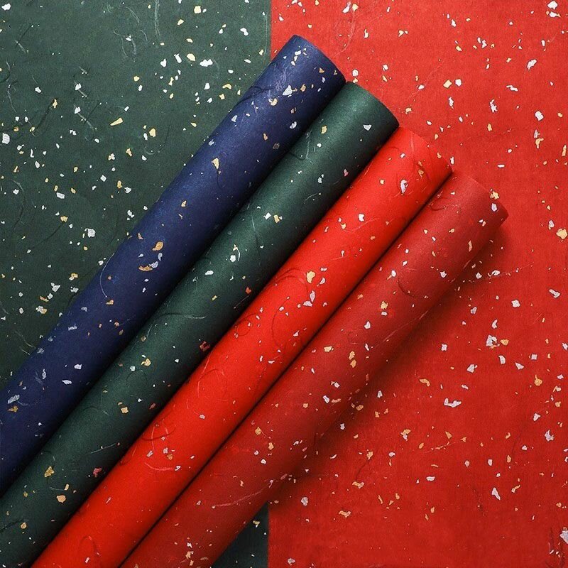 Бумага матовая 120 г с вкраплениями золото/серебро для упаковки цветов, подарков 78х54 - 2 шт. красный 382 ₽