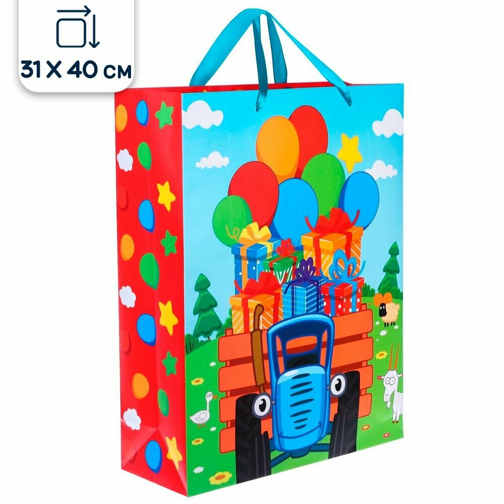 10 цен на Пакет подарочный Синий Трактор, С Днем рождения, красный, 31х40х11,5 см