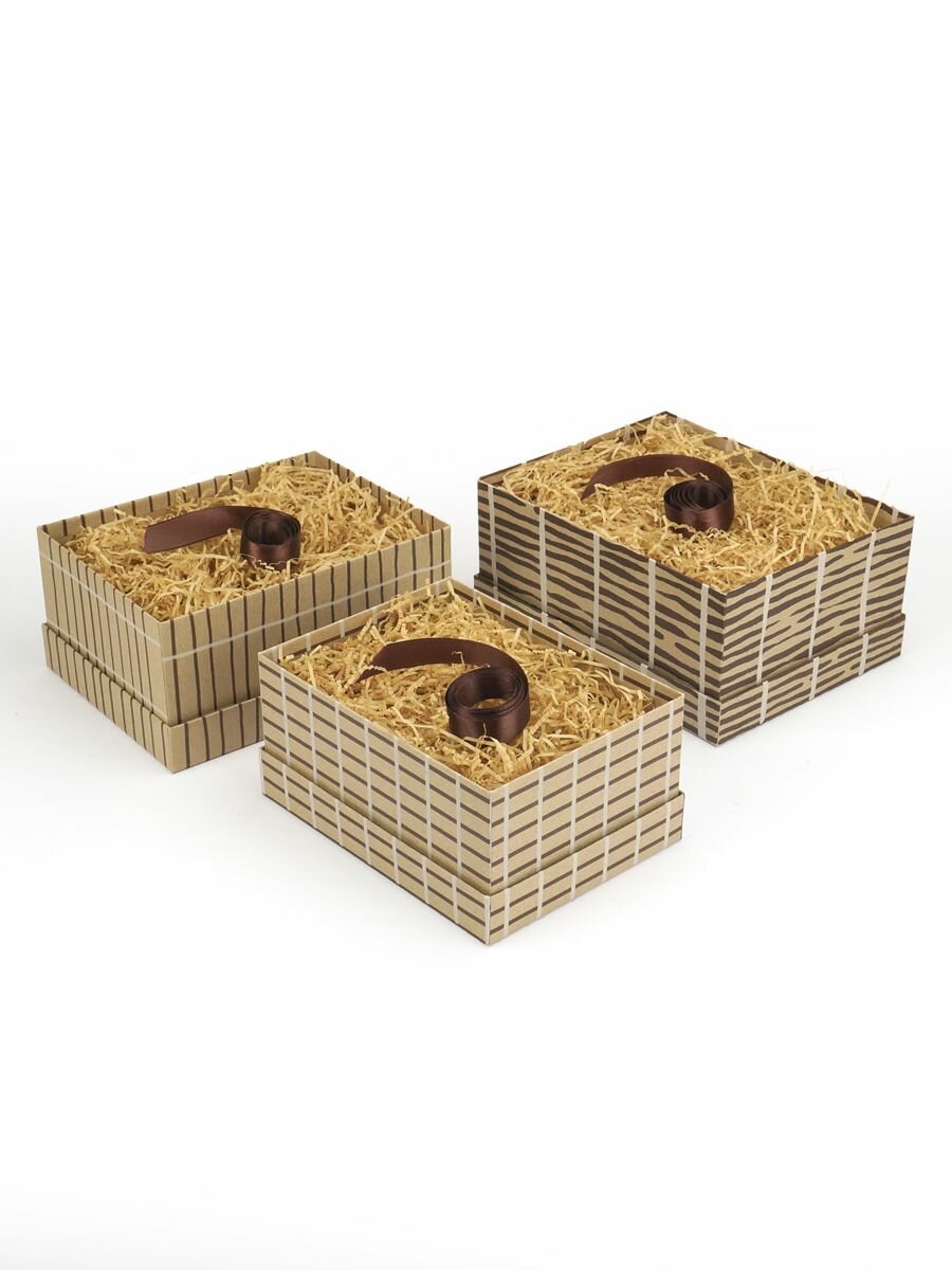 Набор из 3-х крафтовых коробок для упаковки подарков, бумажный наполнитель и атласные ленты информация: