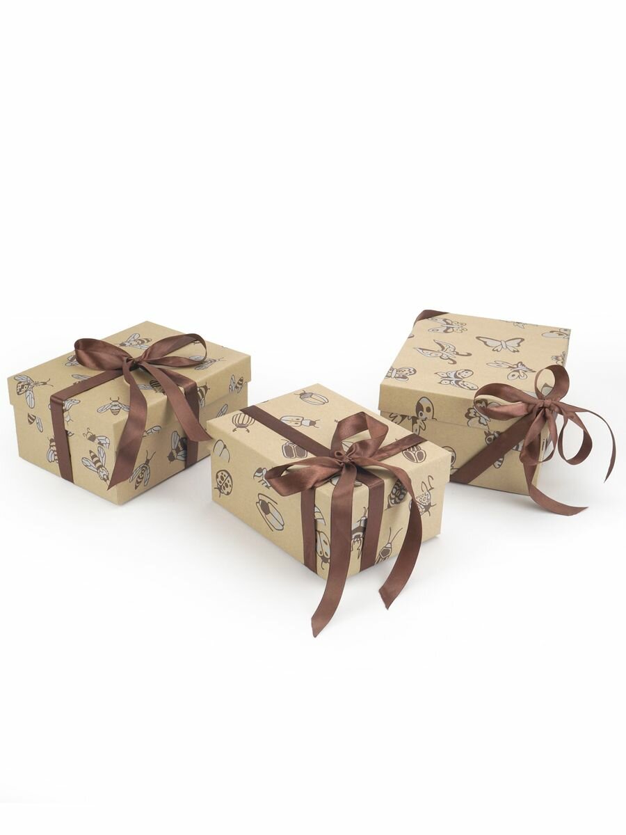 10 цен на Подарочные крафт-коробки картонные с наполнителем и атласной лентой, 3 штуки
