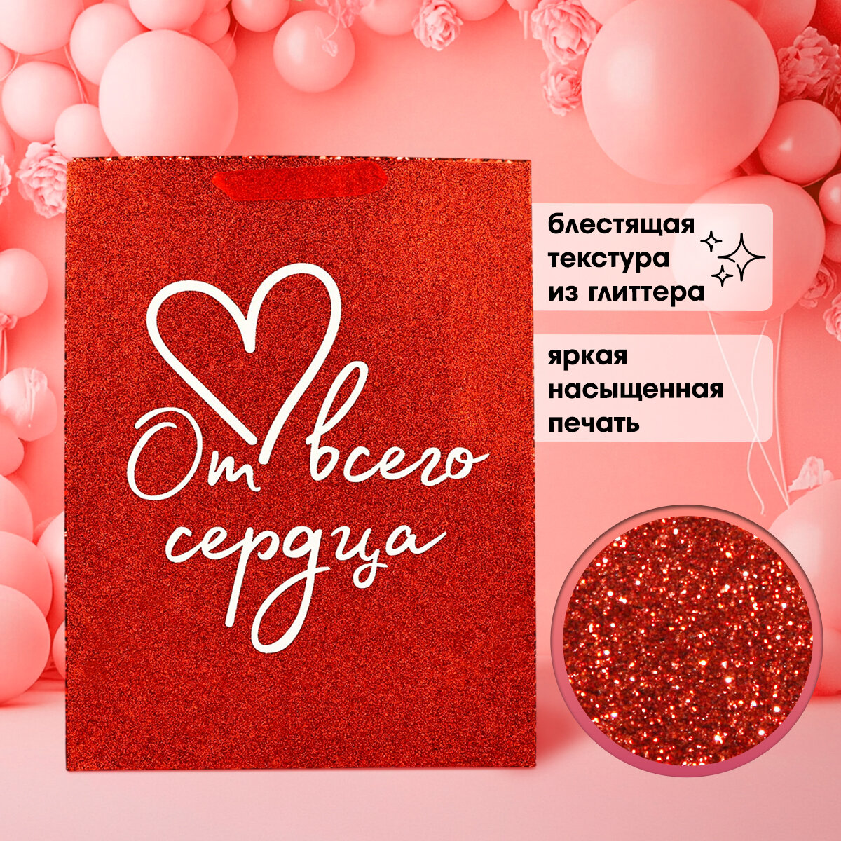Пакет подарочный ламинированный «От всего сердца», глиттер, L 31 х 40 х 11.5 см, вертикальный, красный информация: