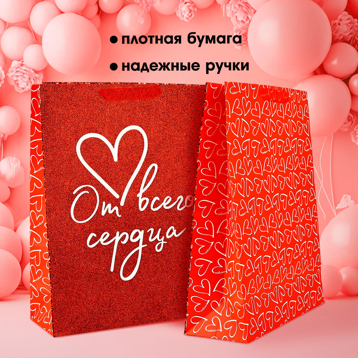 10 цен на Пакет подарочный ламинированный «От всего сердца», глиттер, L 31 х 40 х 11.5 см, вертикальный, красный