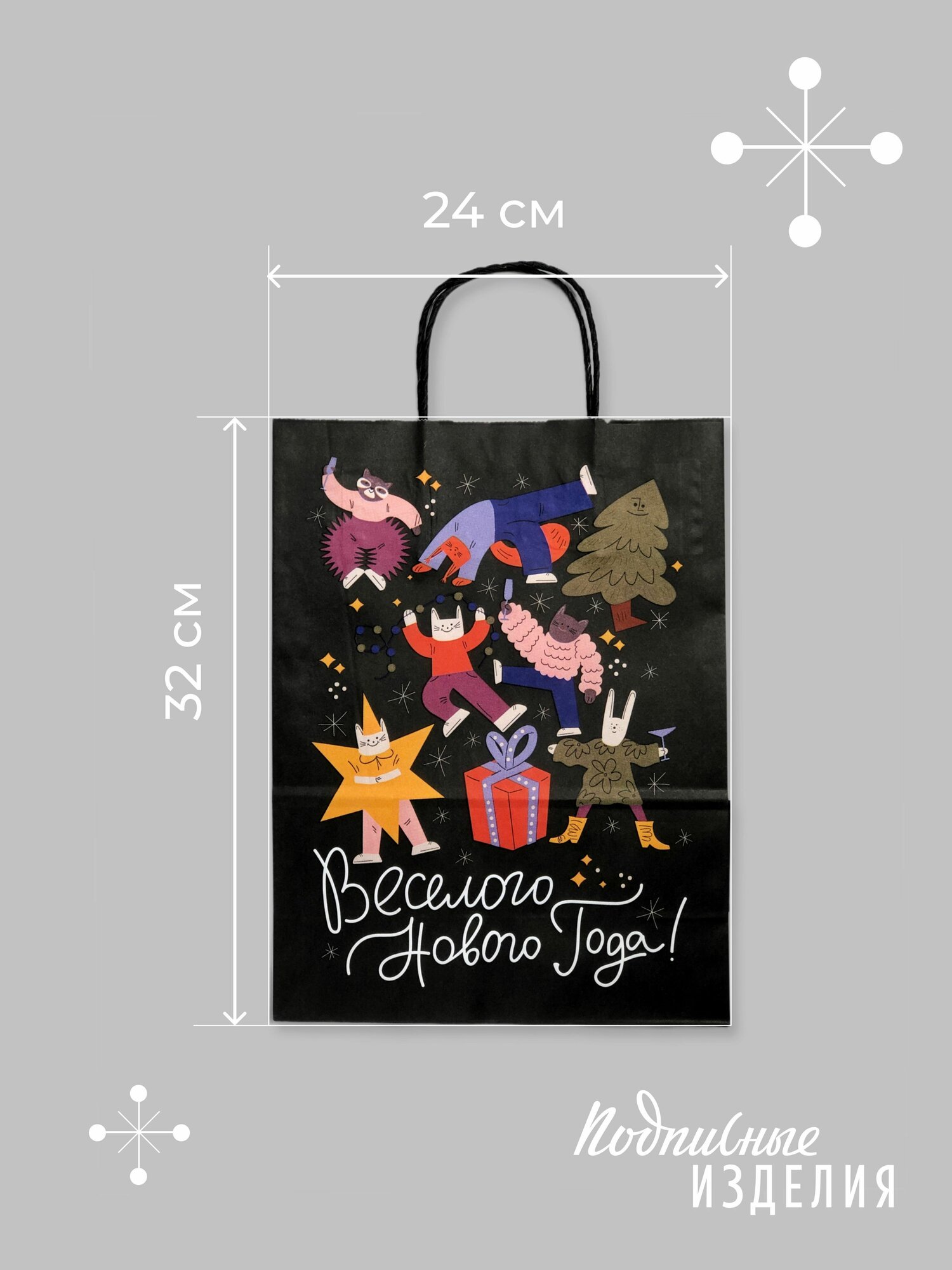 Пакет подарочный полиэтиленовый ПВД с усиленными ручками новогодний детский с днем рождения