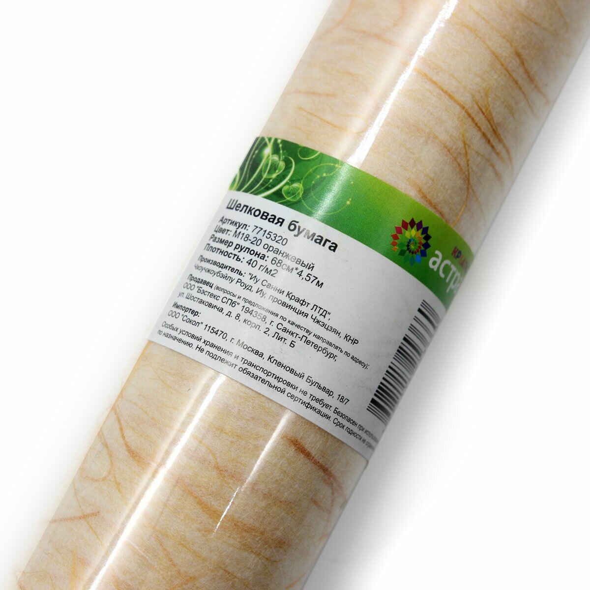 Бумага упаковочная шелковая Astra&Craft креатив, рулон 68см x 4,57м (оранжевый) (M18-20) информация:
