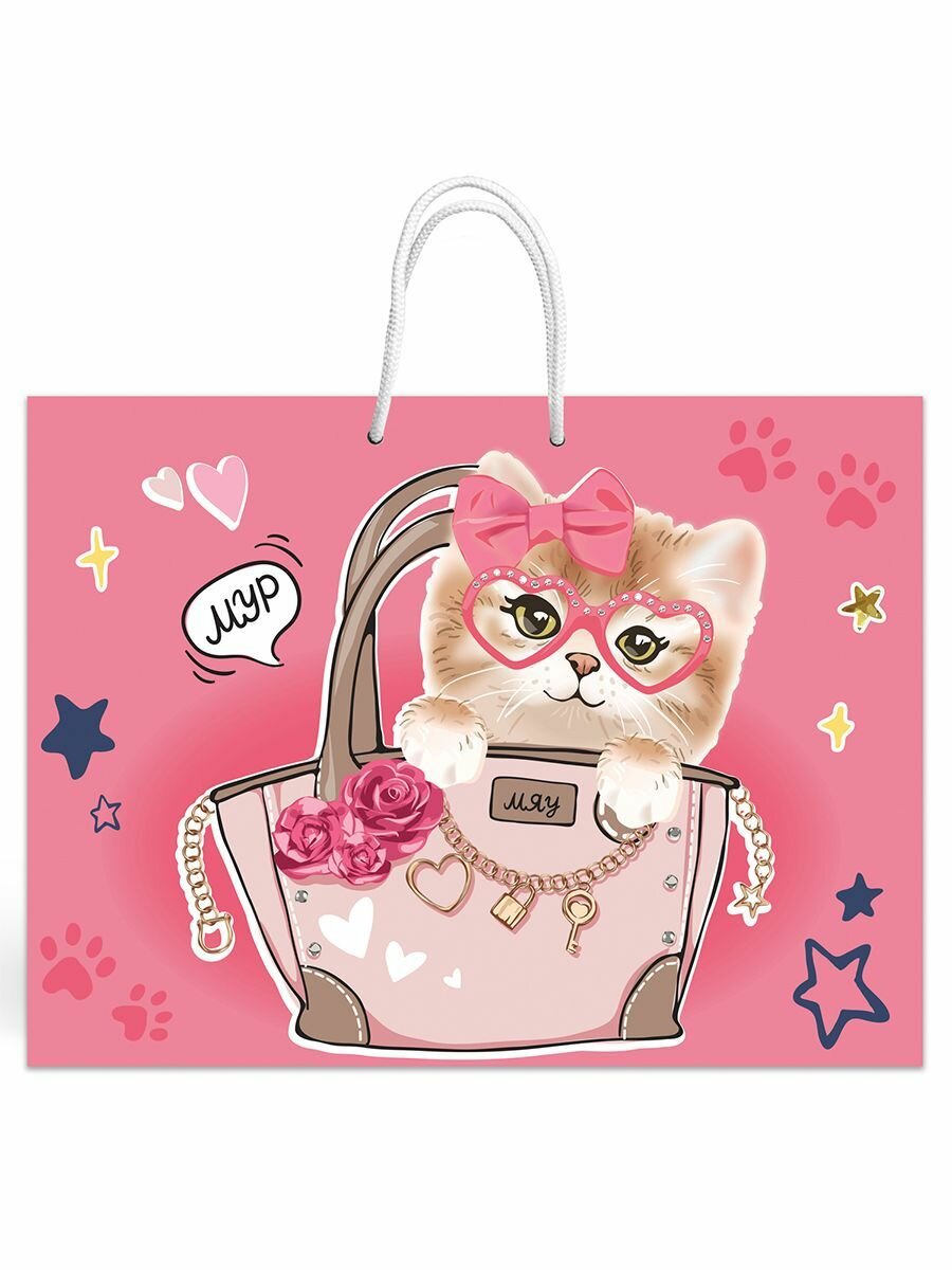 Пакет подарочный большой Котики на розовом, 400*300*140 мм информация: