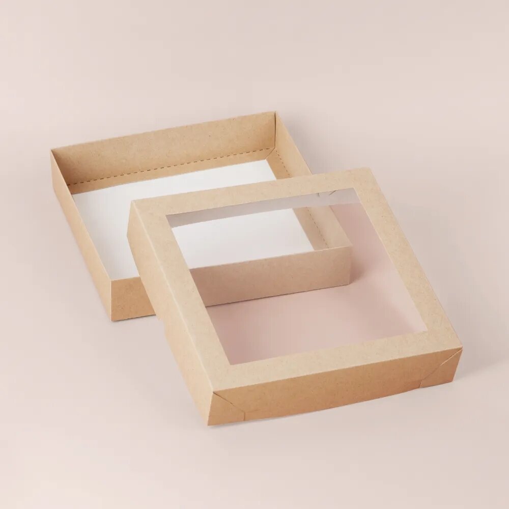 Отзывы на Коробка для пирожных, конфет, пряников с окном 20*20*4см, крафт, 5шт
