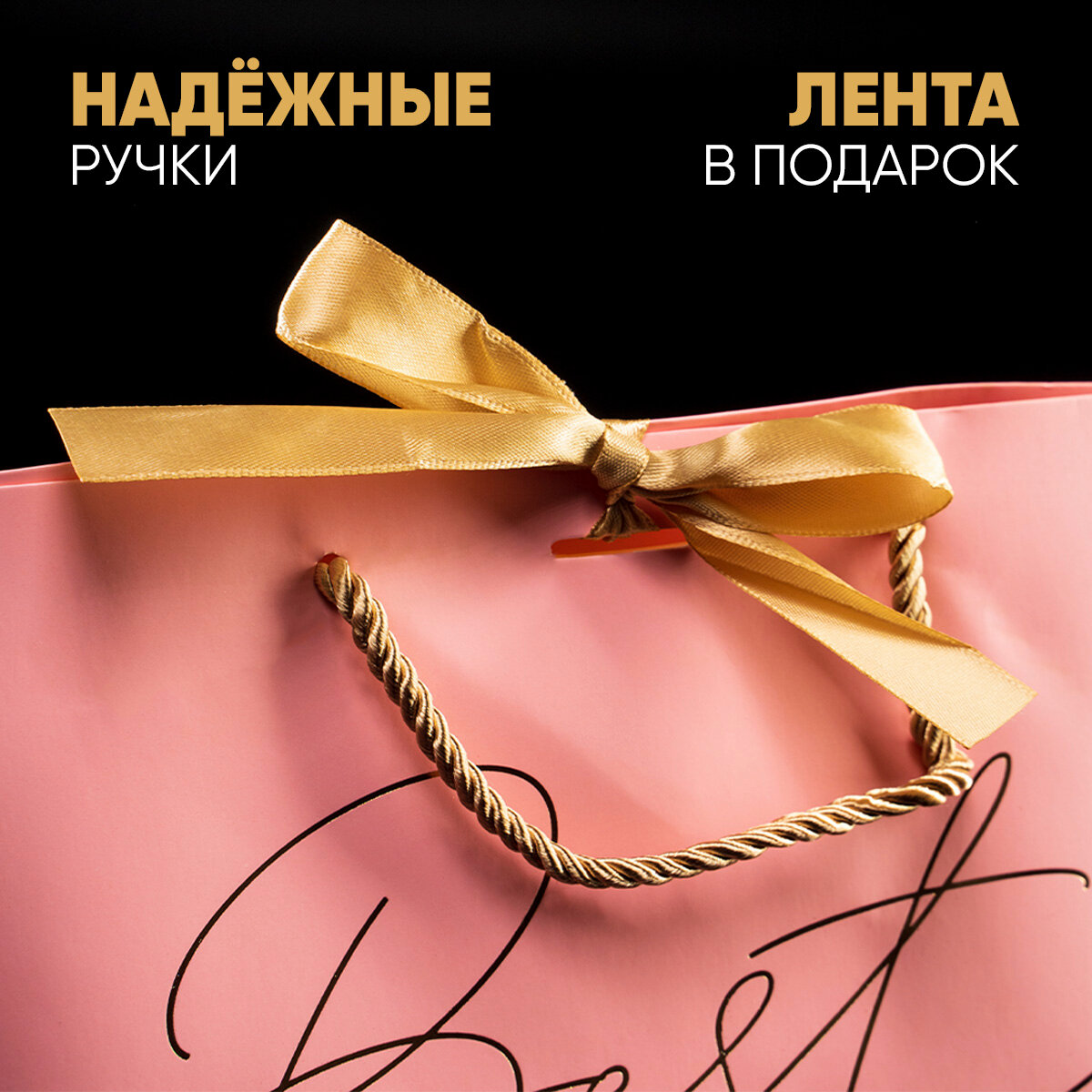 Отзывы на Пакет подарочный с бантом, розовый, 19 х 20 х 9 см, с надписью, лента в комплекте