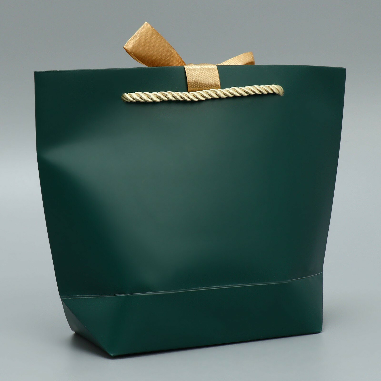 Пакет подарочный с бантом Present for you, 19 х 20 х 9 см, зеленый, лента в комплекте 152 ₽