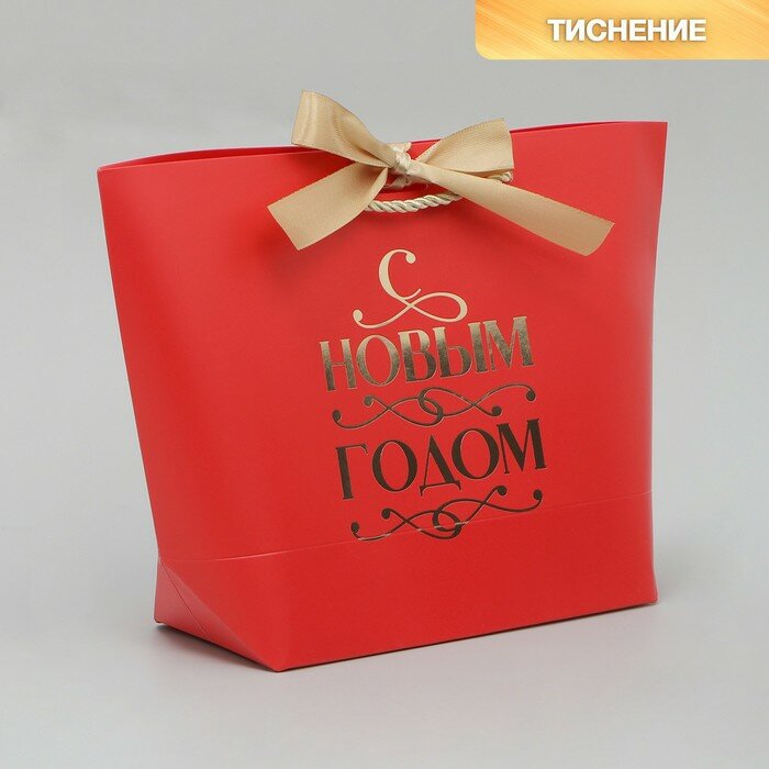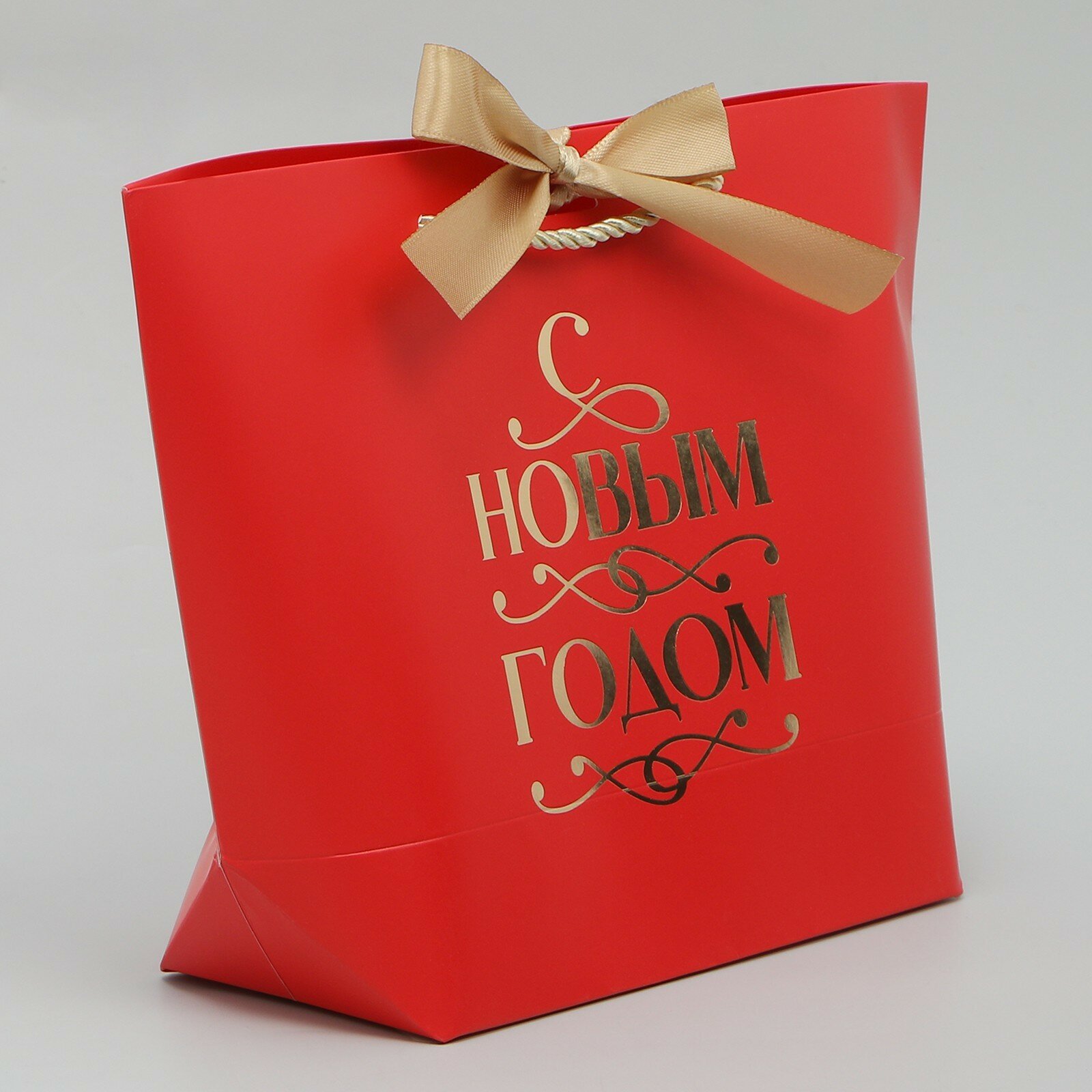 10 цен на Подарочный пакет новогодний красный «Новогодние праздники», 19 х 20 х 9 см, для упаковки подарка на Новый год.