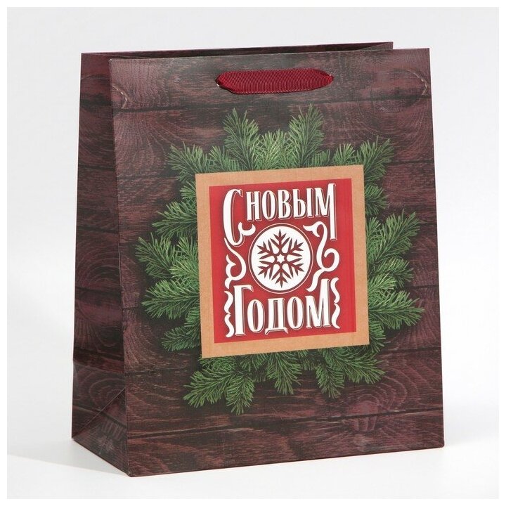 Подарочный пакет новогодний ламинированный «Зимняя ель», M 26 х 30 х 9 см, для упаковки подарка на Новый год. 189 ₽