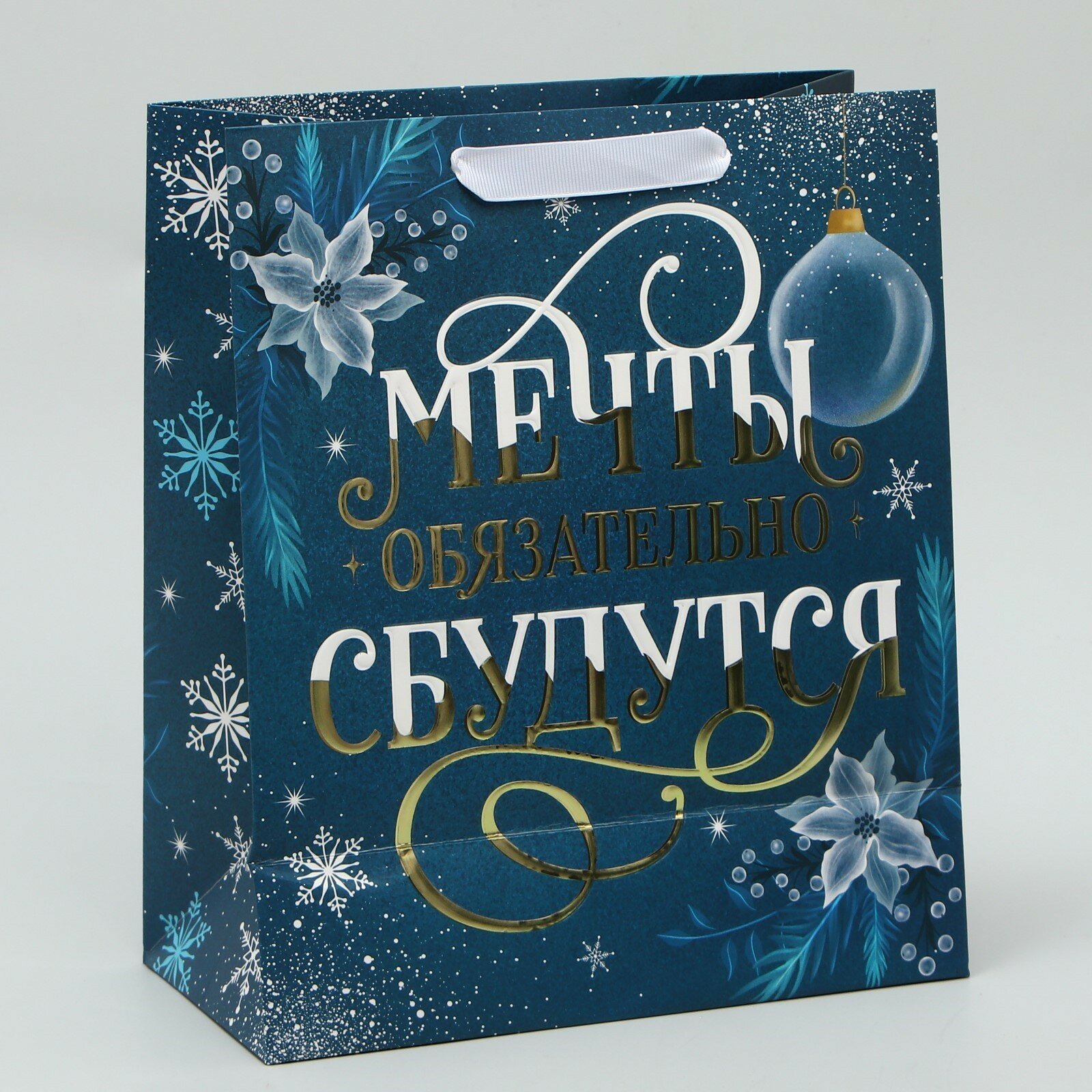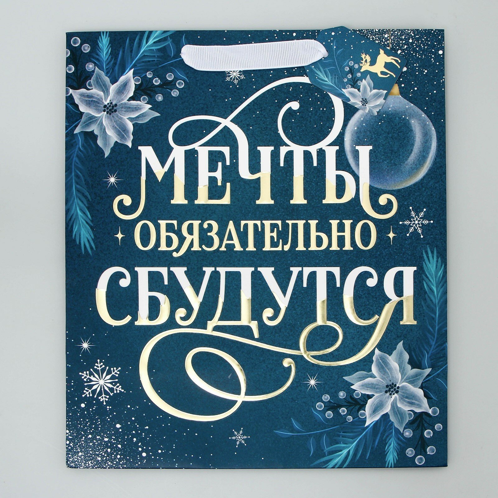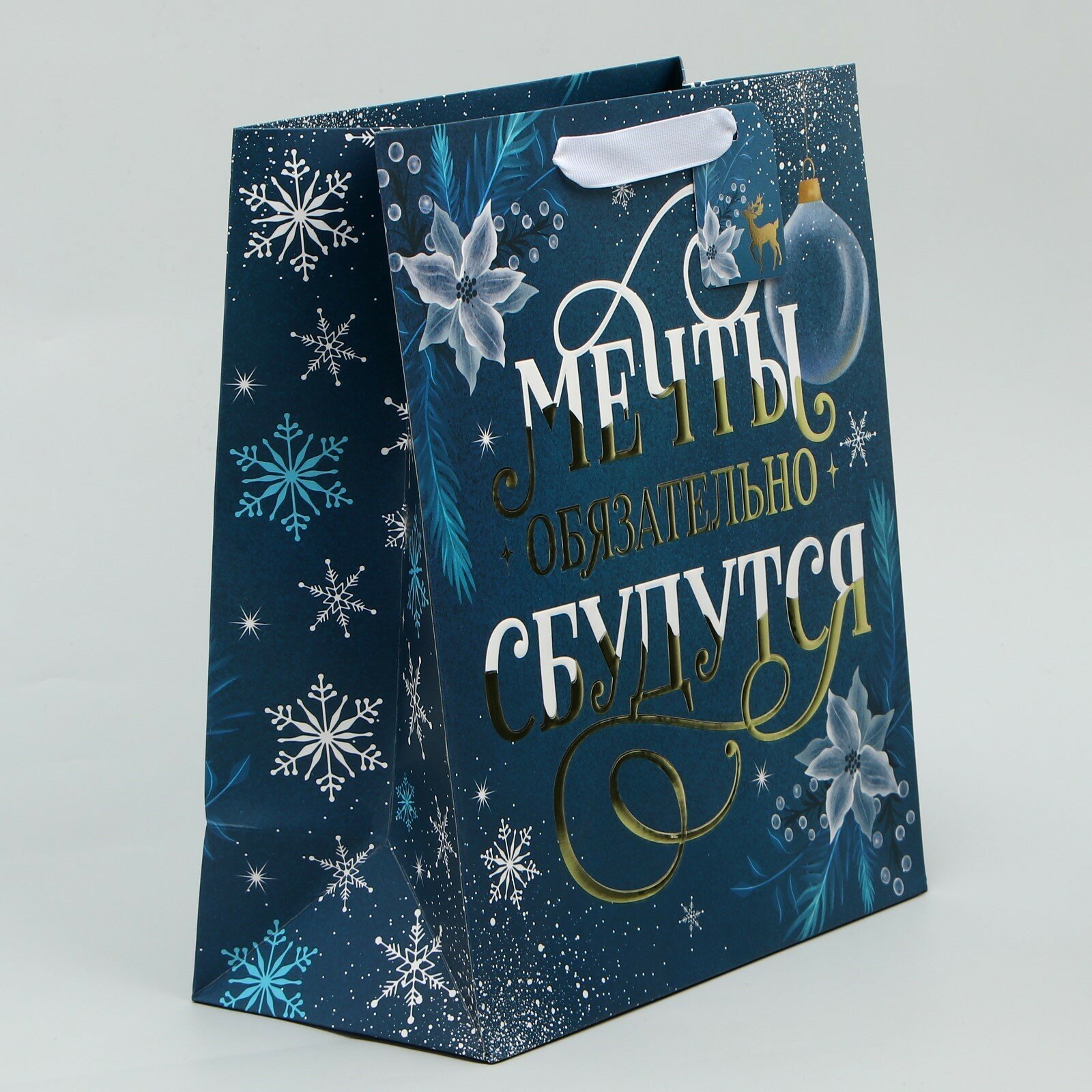 10 цен на Подарочный пакет новогодний, тиснение «Мечты сбудутся», ML 23 х 27 х 11.5 см, для упаковки подарка на Новый год.