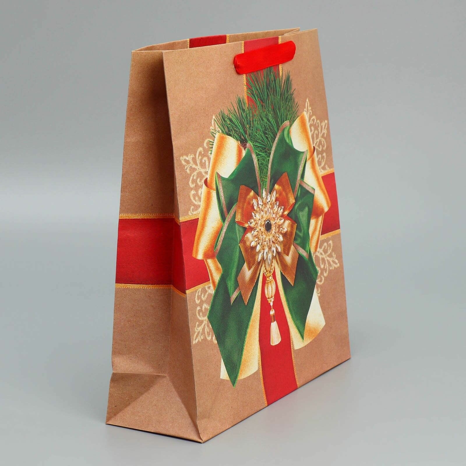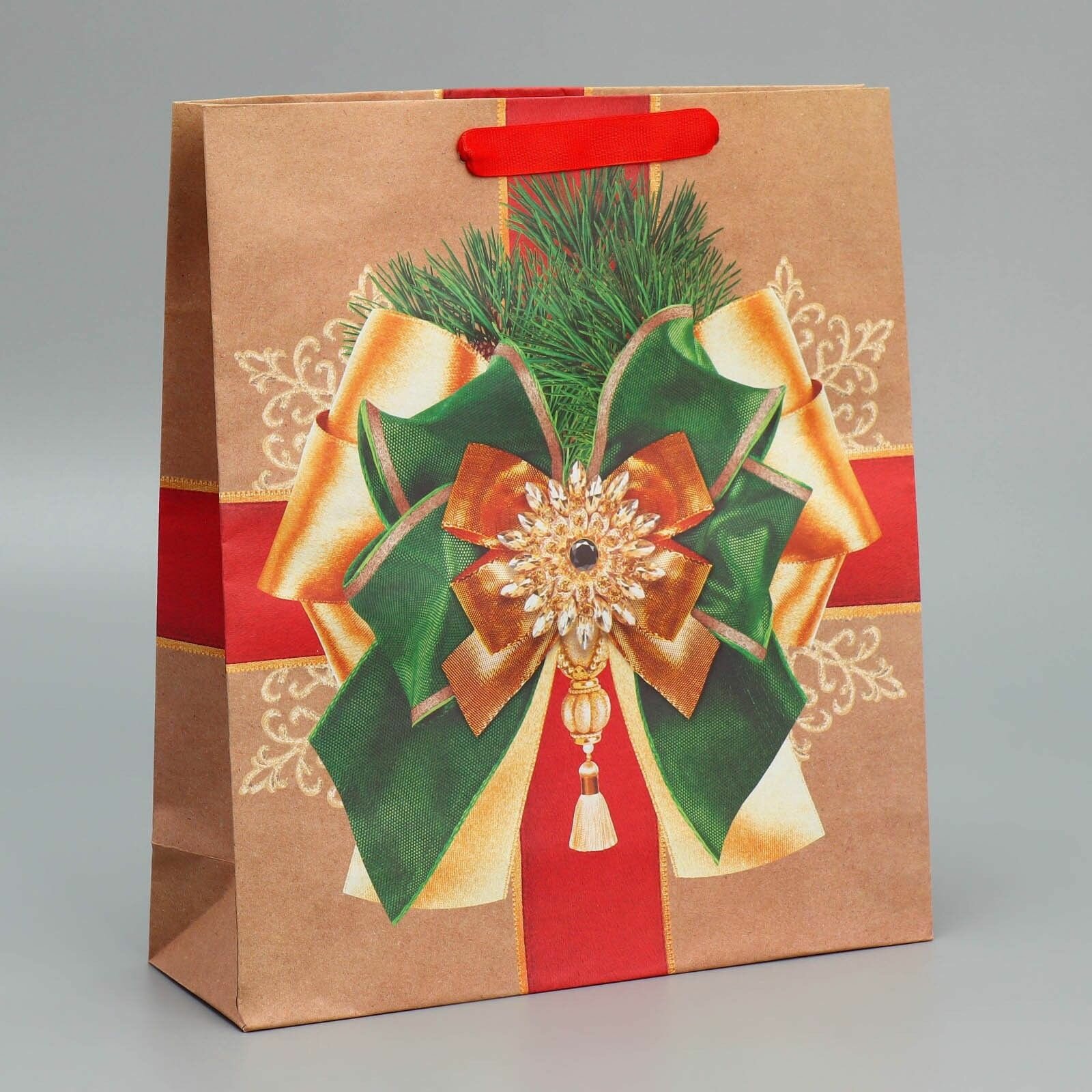 10 цен на Пакет подарочный новогодний крафтовый вертикальный Новогодний подарок , M 26 х 30 х 9 см