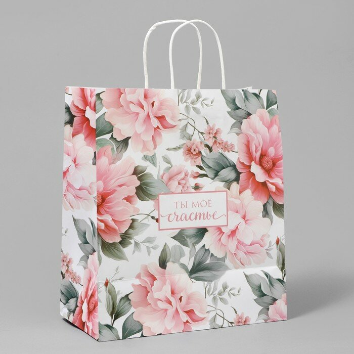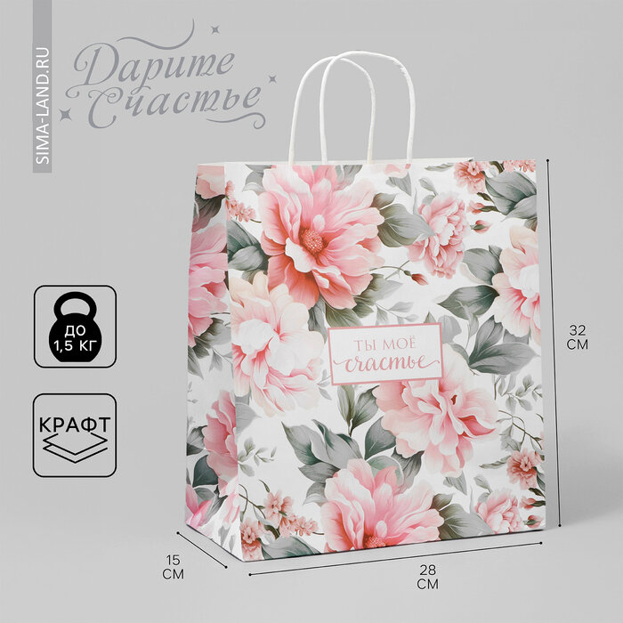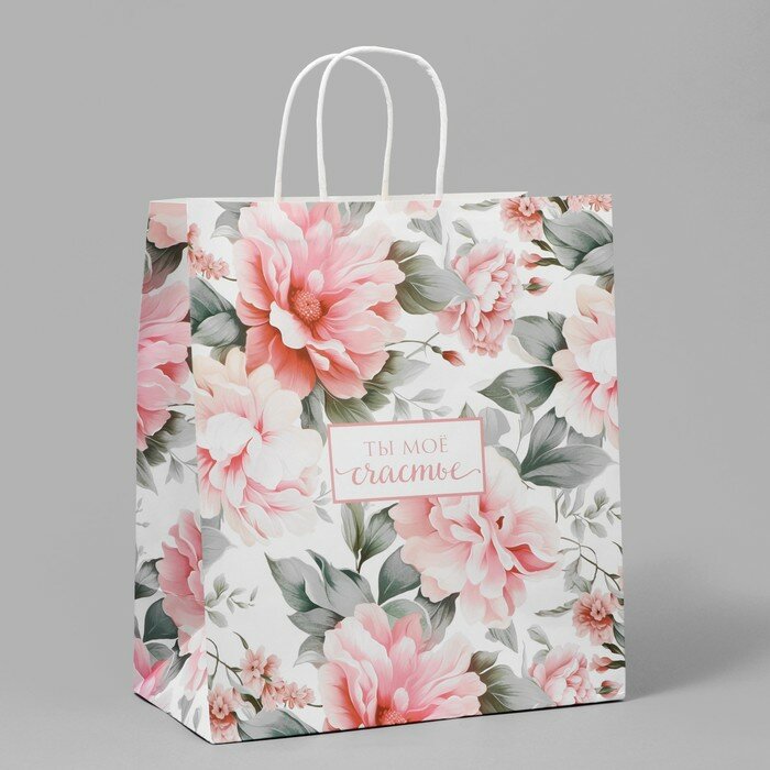 Пакет подарочный крафт, упаковка, «Моё счастье», цветы, 32 х 28 х 15 см, 10181919 информация:
