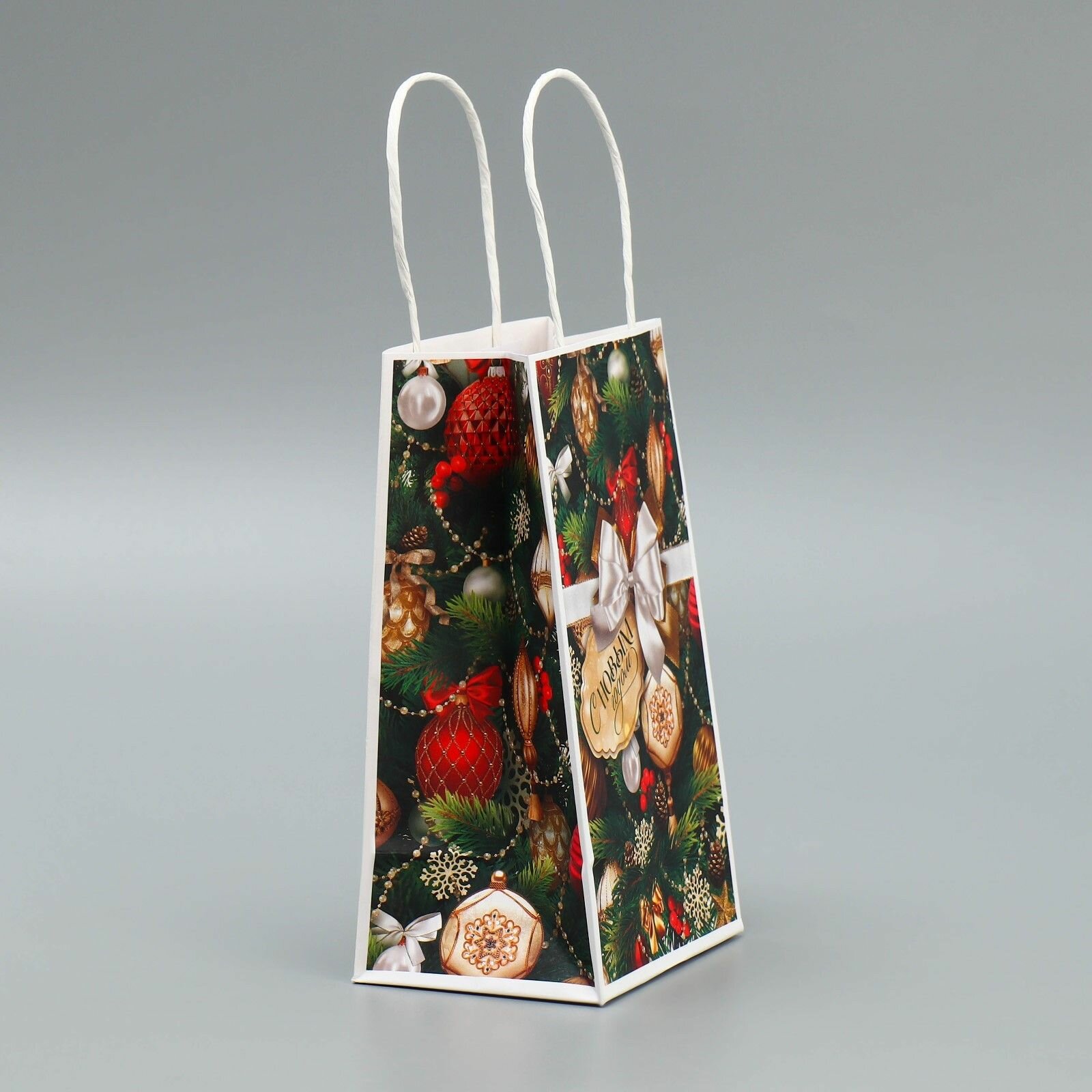 Пакет подарочный новогодний крафтовый Игрушки , 12 х 21 х 9 см информация: