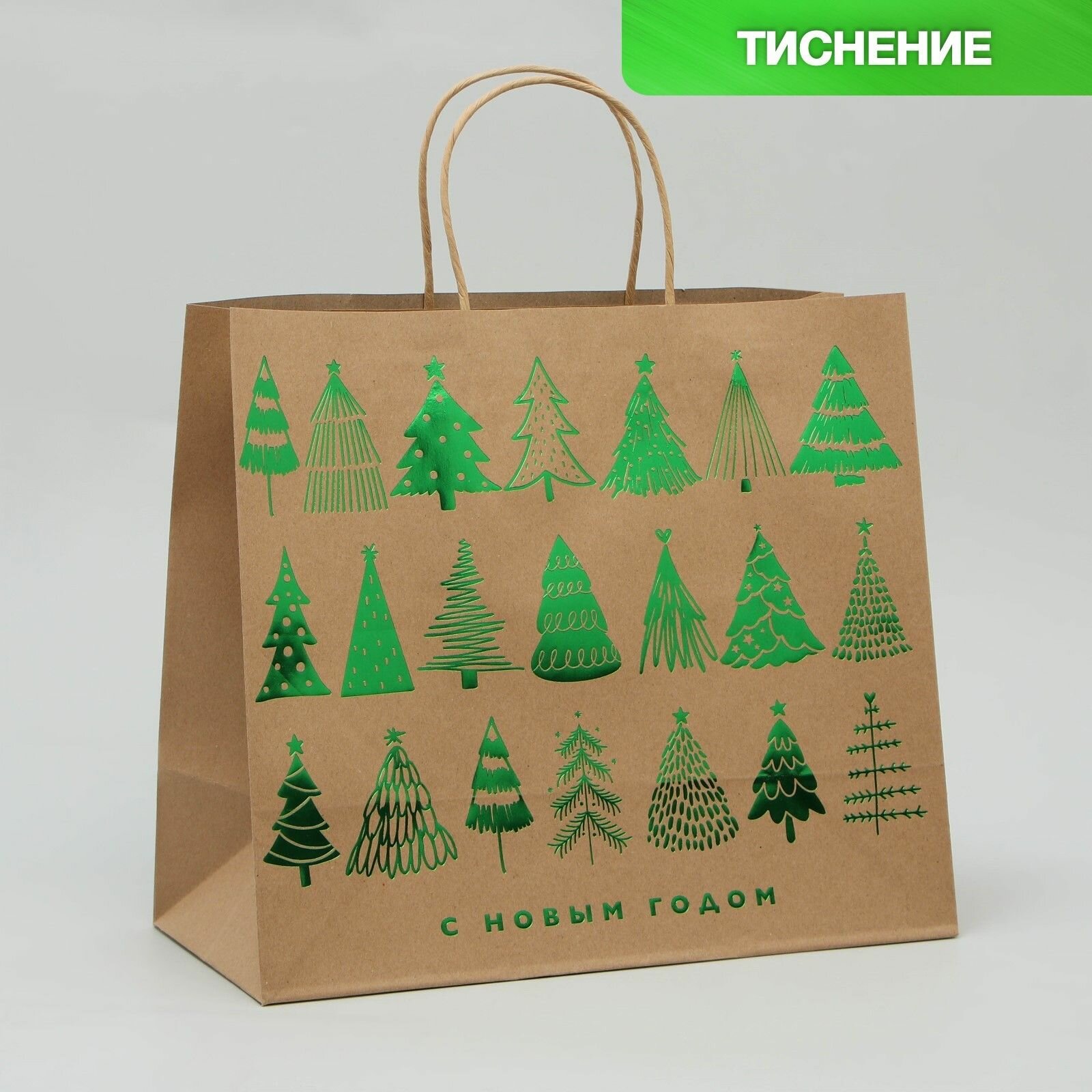 10 цен на Пакет подарочный новогодний крафтовый Forest, 32 х 28 х 15 см